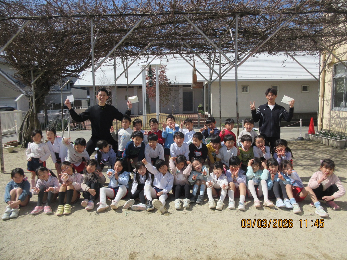 今日はきく組の園生活最後となる、保育参観が行われました。 はじめにお祈りを捧げ、日々の恵みに感謝をお伝えした後は、お家の方へ歌のプレゼント(^_-)-☆サプライズのメッセージでは、真っ直ぐに思いを届ける子どもたちの姿に、温かな感動に包まれました。一人ひとりの思いがしっかりと保護者の皆様の心に届いたことと思います。 感動の後は、園庭へ出て元気にドッジボール&# ……