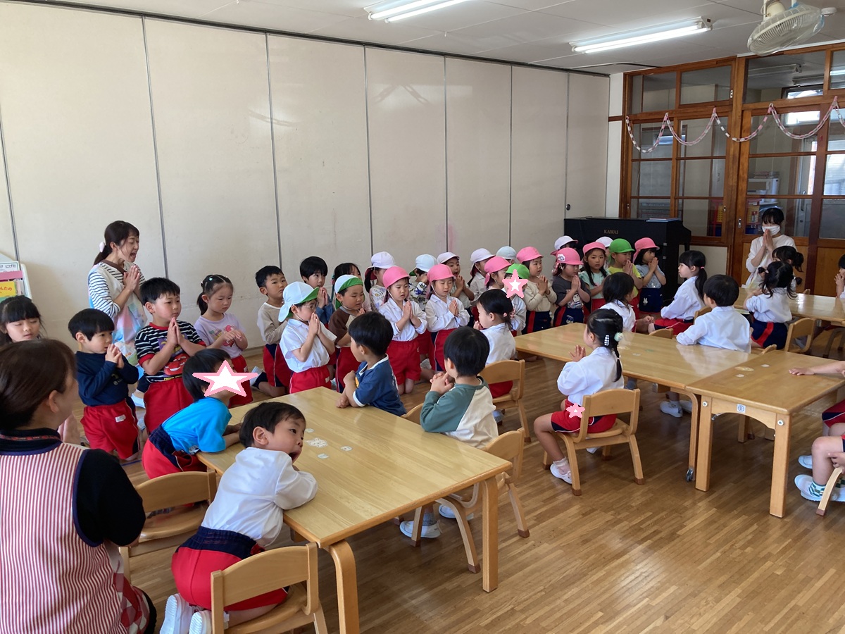 今日から、一日保育が始まりました♡幼稚園にはどんなお部屋があるのかな?ときく組さんとゆり組さんが手をつないで幼稚園の中を探検しました(*^_^*) ゆり組さんは初めて給食♡おいしくいただきました(*^_^*)