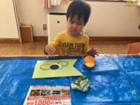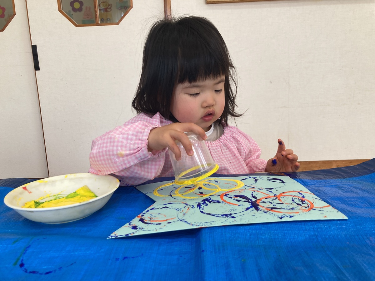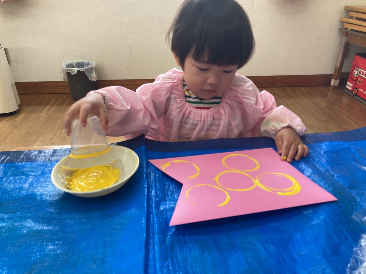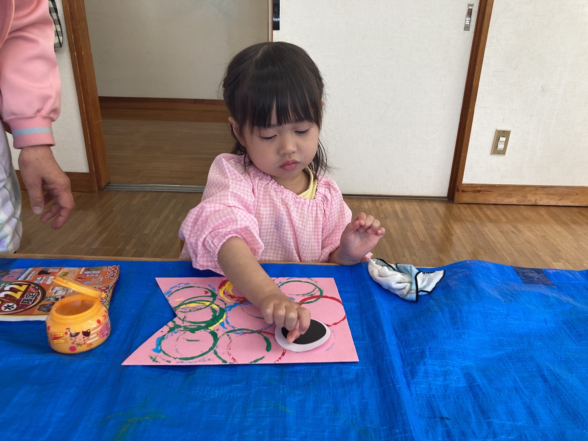 その後は、”こいのぼり”作りに挑戦!!丸型を使って、青や赤色などの絵の具で模様をつけたり…🖌