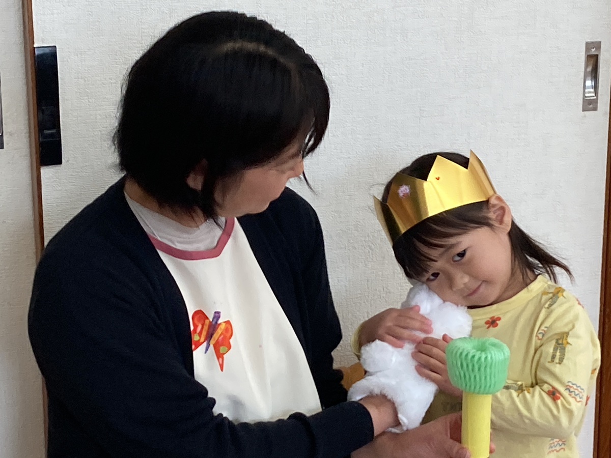 お楽しみ会の『まあるいたまご』の手袋シアターもみんなで歌いながら楽しみましたよ♪