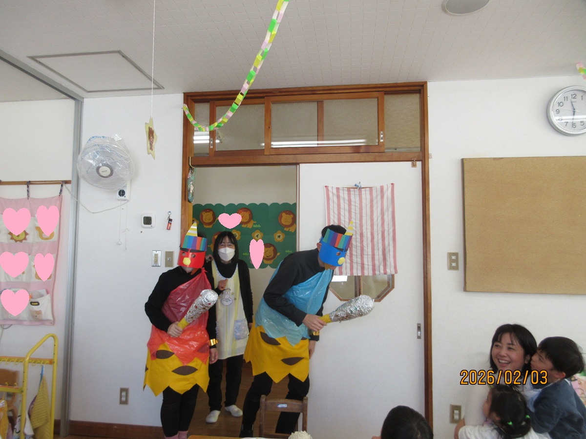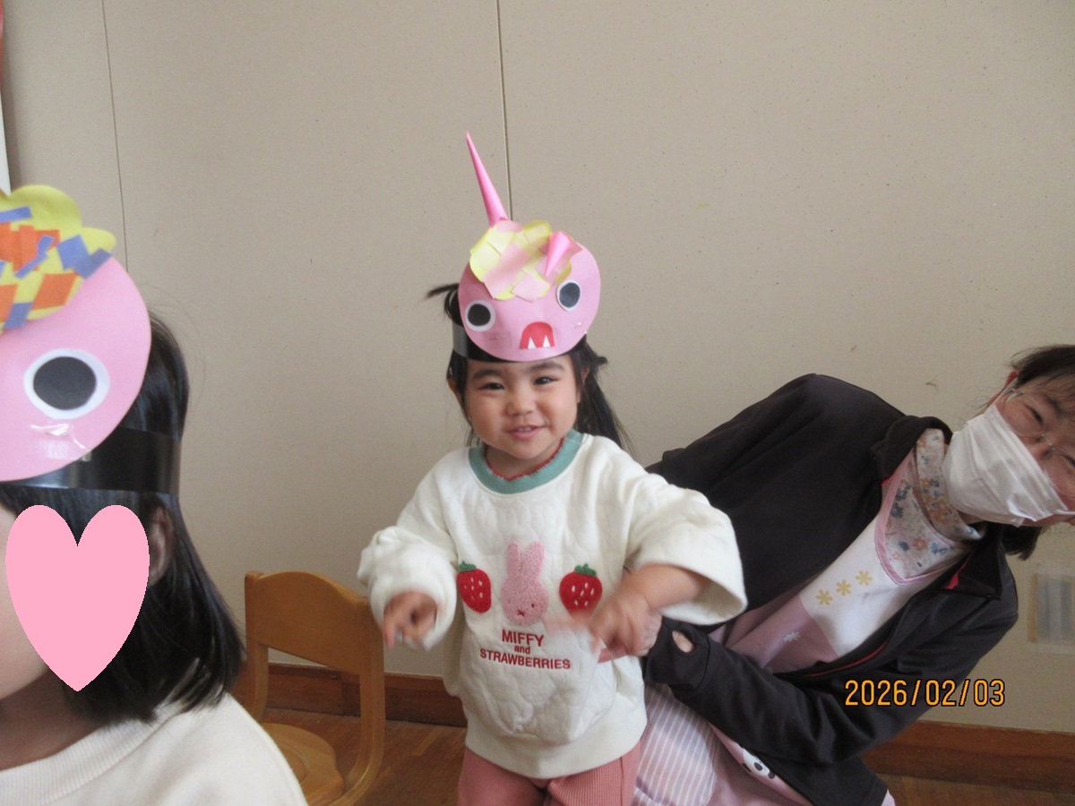 「おにはそと~ふくはうち ♫」ひまわり組の保育室では、子ども達の元気な歌声が響いいます 😊