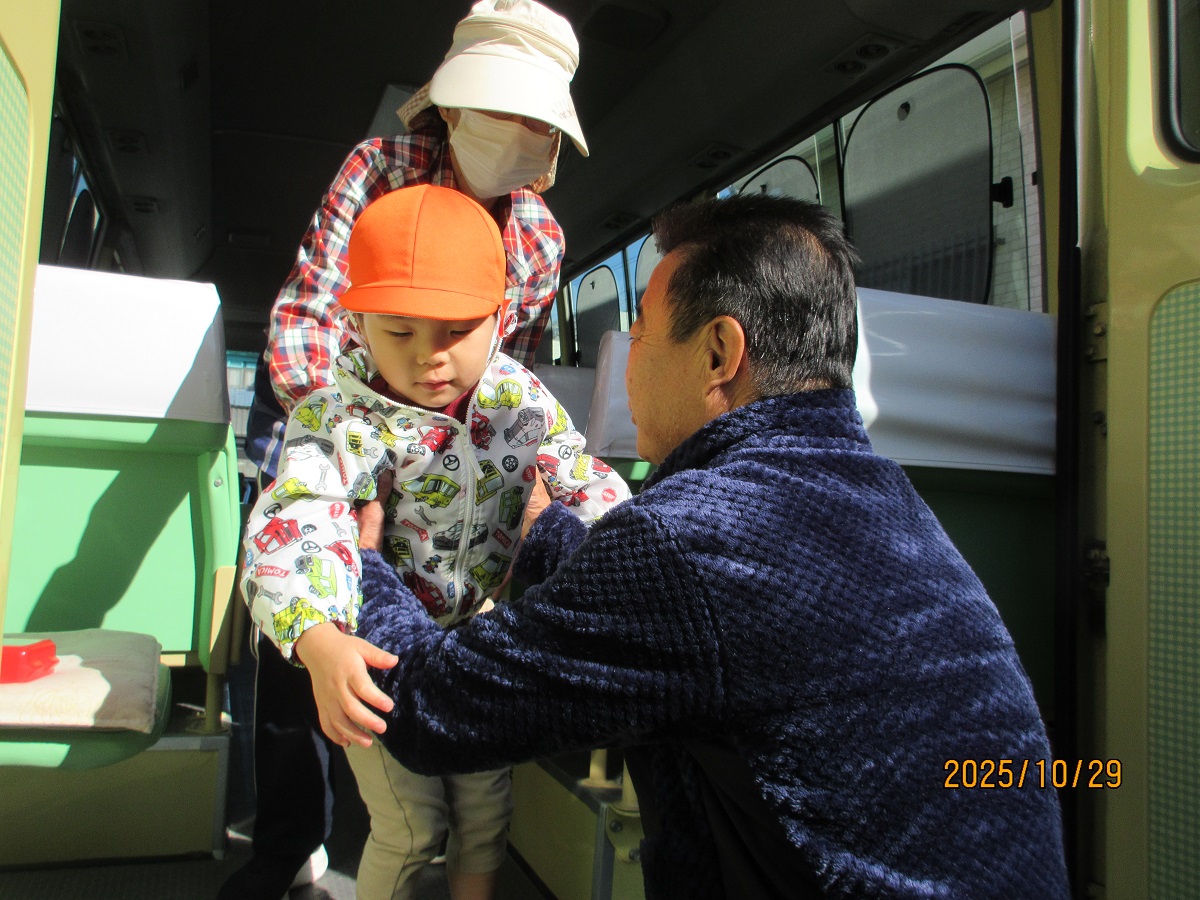 今日はバス乗車時の避難訓練をしました 🚌 誘導に従って、非常出口から外に避難! 「しっかりつかまってね !」 運転手さんにお手伝いいただき、全員無事に避難する事が出来ました 💮 避難訓練の後は… お日様の光と心地良い秋風の中、 園庭で遊びました🌞🍂 お友だちとお店屋さんごっこをした ……