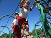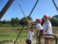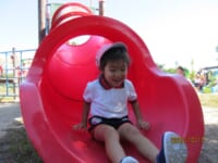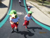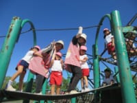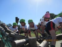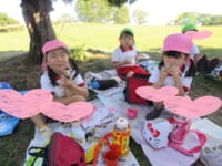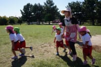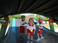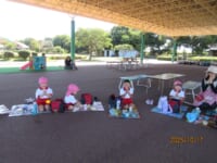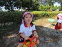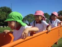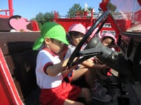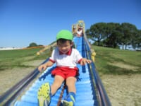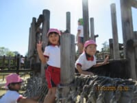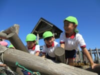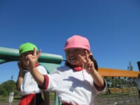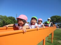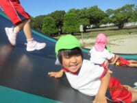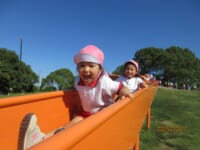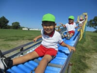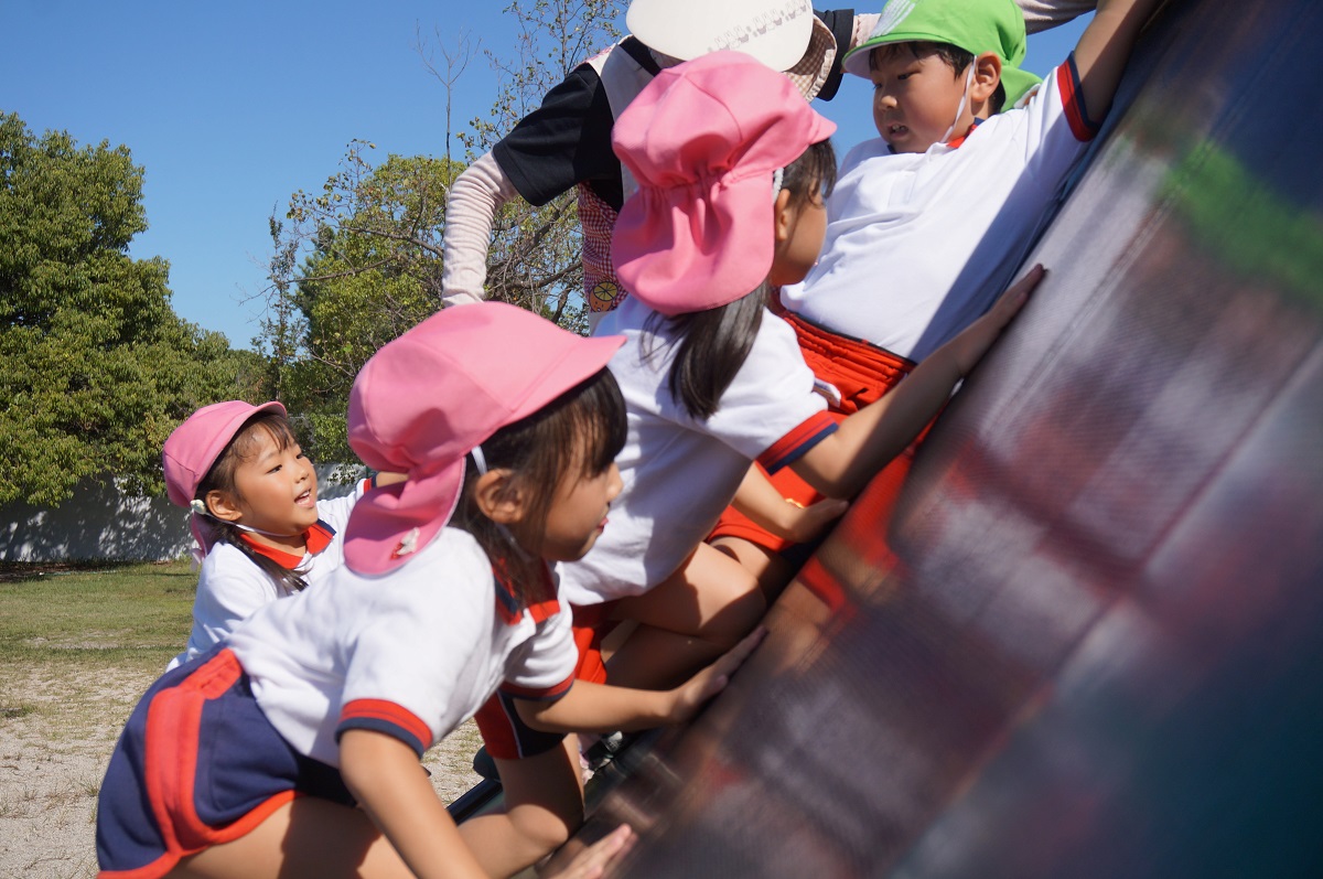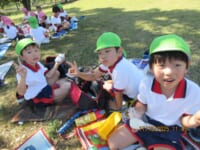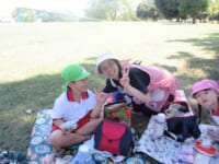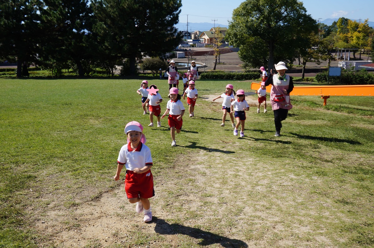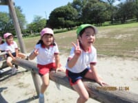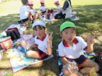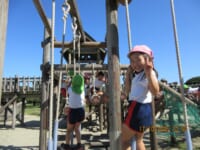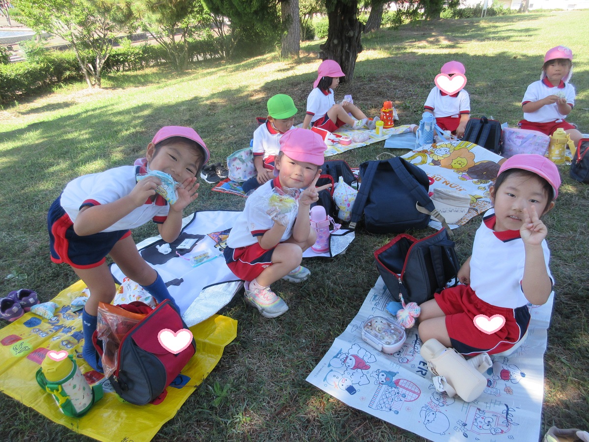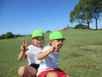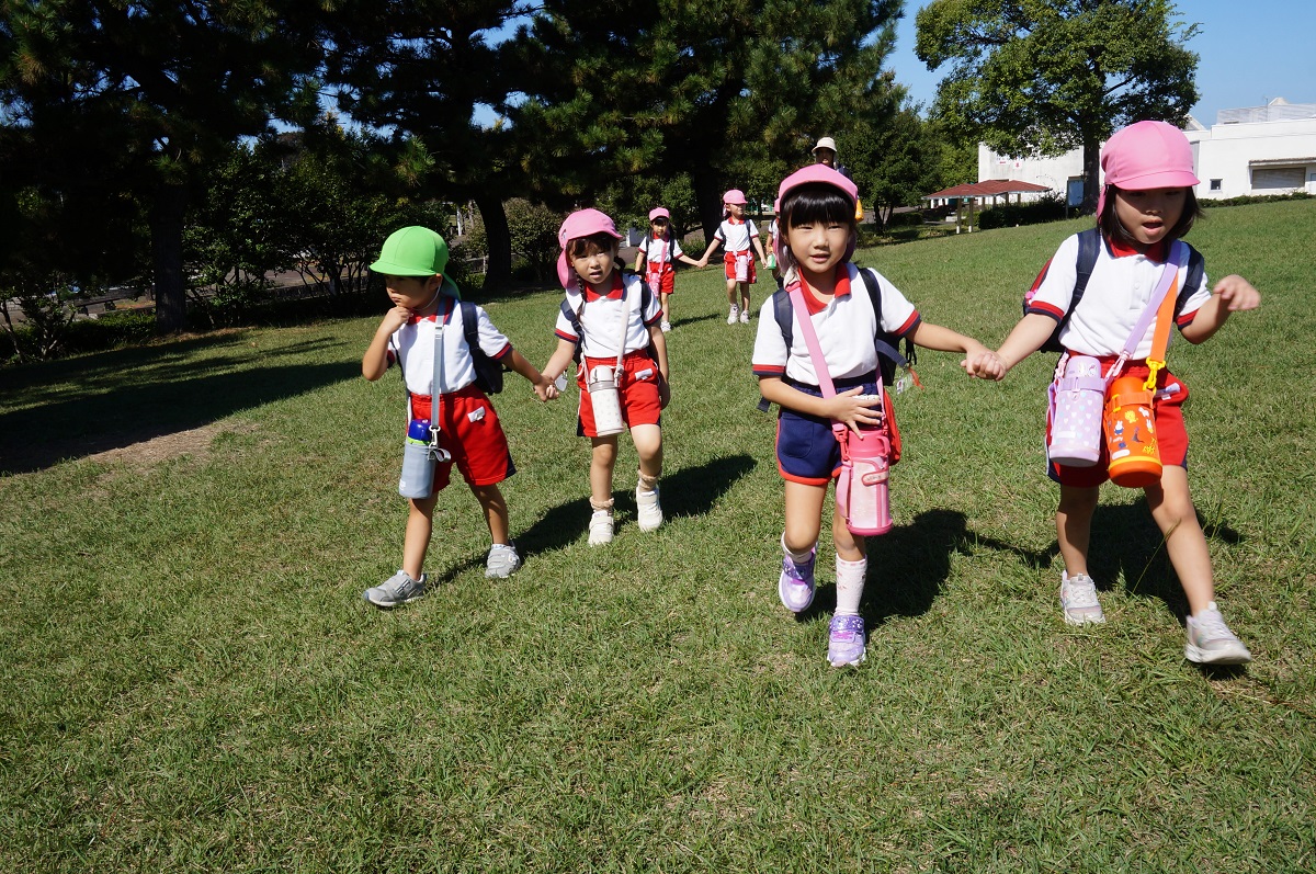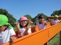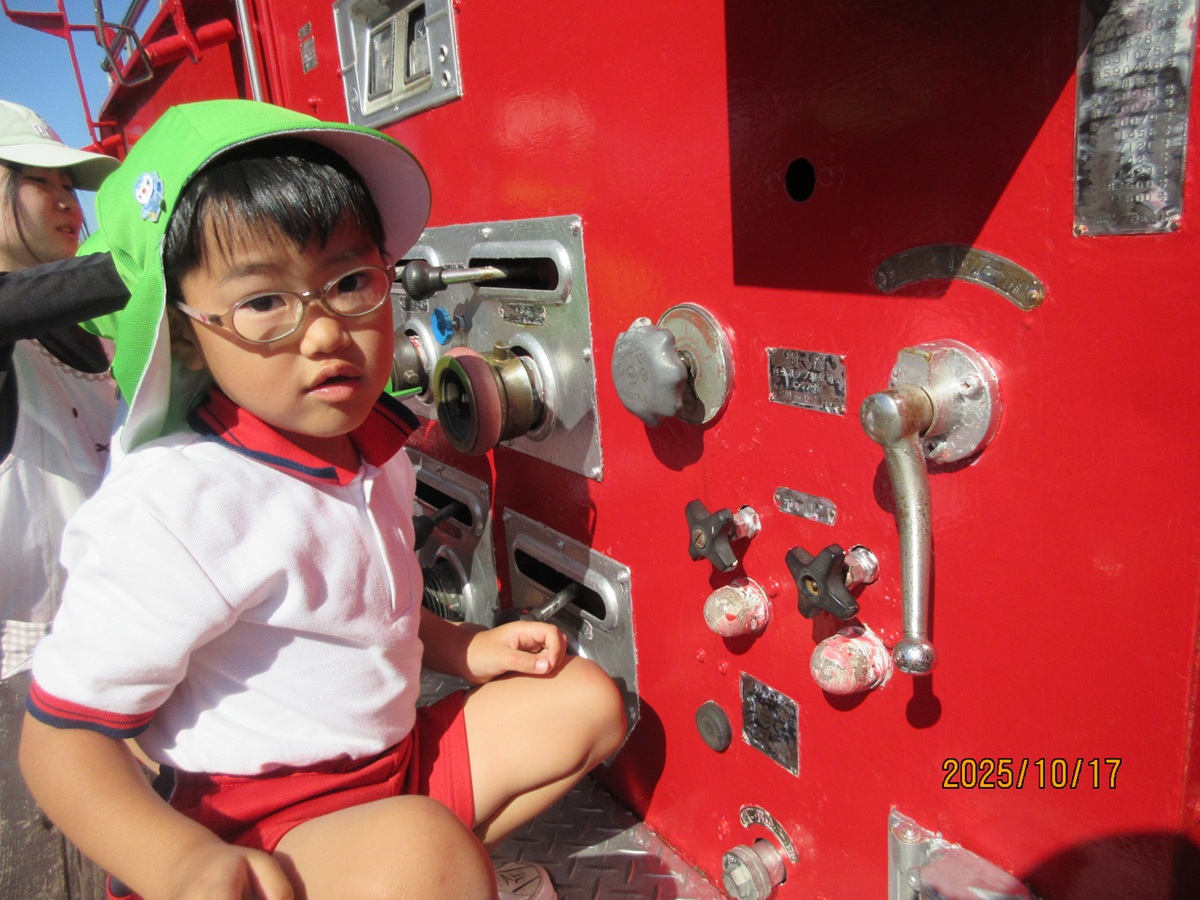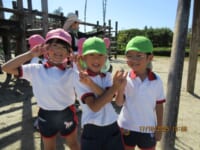 海南子どもの国に到着すると、みどぽんと一緒に記念写真を撮りました(*^_^*)その後は、クラスごとに分かれて思いっきり楽しみました。消防車に乗ったり、長いローラー滑り台を滑ったり、ターザンロープに挑戦したり、幼児コーナーではお友だちと仲良く遊んだり🎶遊具だけではなく、広い自然の中を思いきり走り回る姿も見られ、笑顔でいっぱいでした。たくさん遊んだあとは、秋空の下でお楽しみのおにぎり弁当タイム🍙「美味しいね~💗」と、ニコニコ笑顔が広がり、楽しい会話も弾みました♪お腹も心も満たされたあとは、もうひと遊び‼秋の自然の中でたくさんの笑顔と楽しい思い出がいっぱい💗素敵な一日になりました(*^_^*)