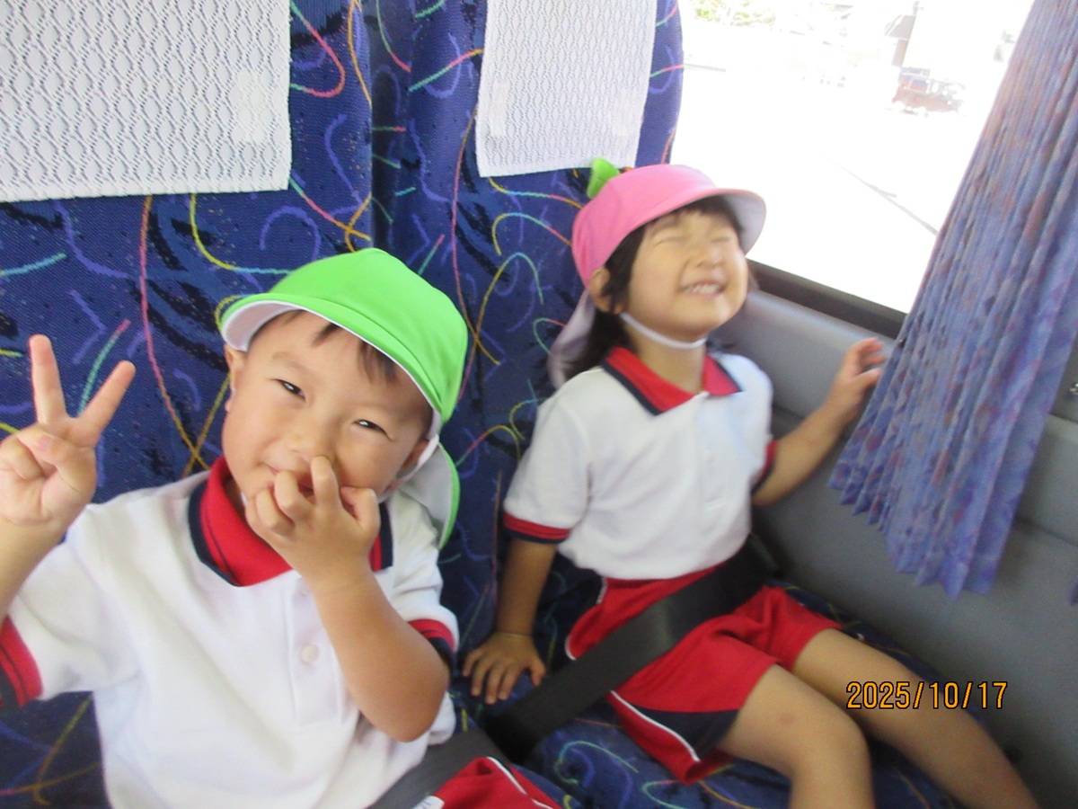 今日は待ちに待った秋の遠足の日。お天気にも恵まれ、秋のやさしい風に包まれながら元気いっぱい園を出発しました‼バスの中では、各クラスの先生たちがガイドさんになって盛り上げてくれました(*^_^*)笑い声と歌声が響き渡り期待とワクワクに満ちた楽しい時間になりました。