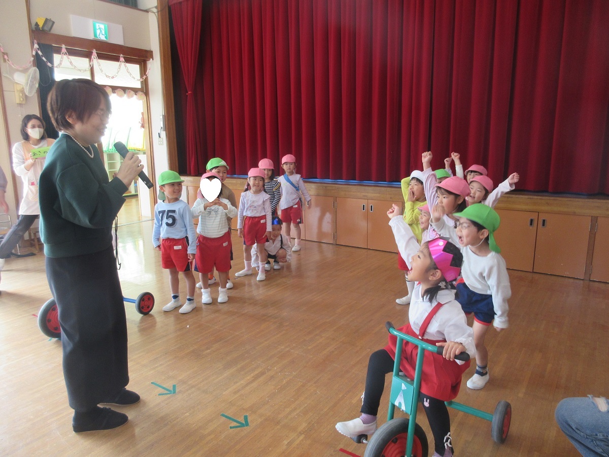 ใŠๆฅฝใ—ใฟใฎๆ™‚้–“ใซใฏใ€ใ€Ž้‹ๅ‹•ไผšใ‚ฒใƒผใƒ ใ€ใ‚’่กŒใ„ใพใ—ใŸใ€‚ใ‚ฑใ‚ปใƒฉใ‚ปใƒฉใฎใƒ€ใƒณใ‚นใ‚’่ธŠใฃใŸๅพŒใฏใ€ๆœ€้ซ˜ๅˆฐ้”็‚นใฎ้Ÿณๆฅฝใซๅˆใ‚ใ›ใฆไธ‰่ผช่ปŠใƒชใƒฌใƒผใ‚’ใ—ใพใ—ใŸโ™ชไปŠๆ—ฅใฎๅฏฉๅˆคใฏใ€ๅ…ˆ็”ŸใŸใกใงใฏใชใใ€ไฟ่ญท่€…ใฎ็š†ๆง˜ใงใ™โ™ชๆฐ—ๅˆใ„ใŸใฃใทใ‚ŠใฎๆŽ›ใ‘ๅฃฐใ‚’ใ‚ใ‚ŠใŒใจใ†ใ”ใ–ใ„ใพใ—ใŸใ€‚ใƒชใƒฌใƒผใฎใ‚ขใƒณใ‚ซใƒผใจใ—ใฆไธ‰่ผช่ปŠใƒชใƒฌใƒผใซใ‚‚ๅ‚ๅŠ ใ„ใŸใ ใๅ‹ขใ„ใŸใฃใทใ‚Šใฎ่ตฐใ‚Šใ‚’่ฆ‹ใ›ใฆใ„ใŸใ ใใพใ—ใŸโ™กๆฅฝใ—ใ„ๆ™‚้–“ใซใชใ‚Šใพใ—ใŸ(*^_^*)