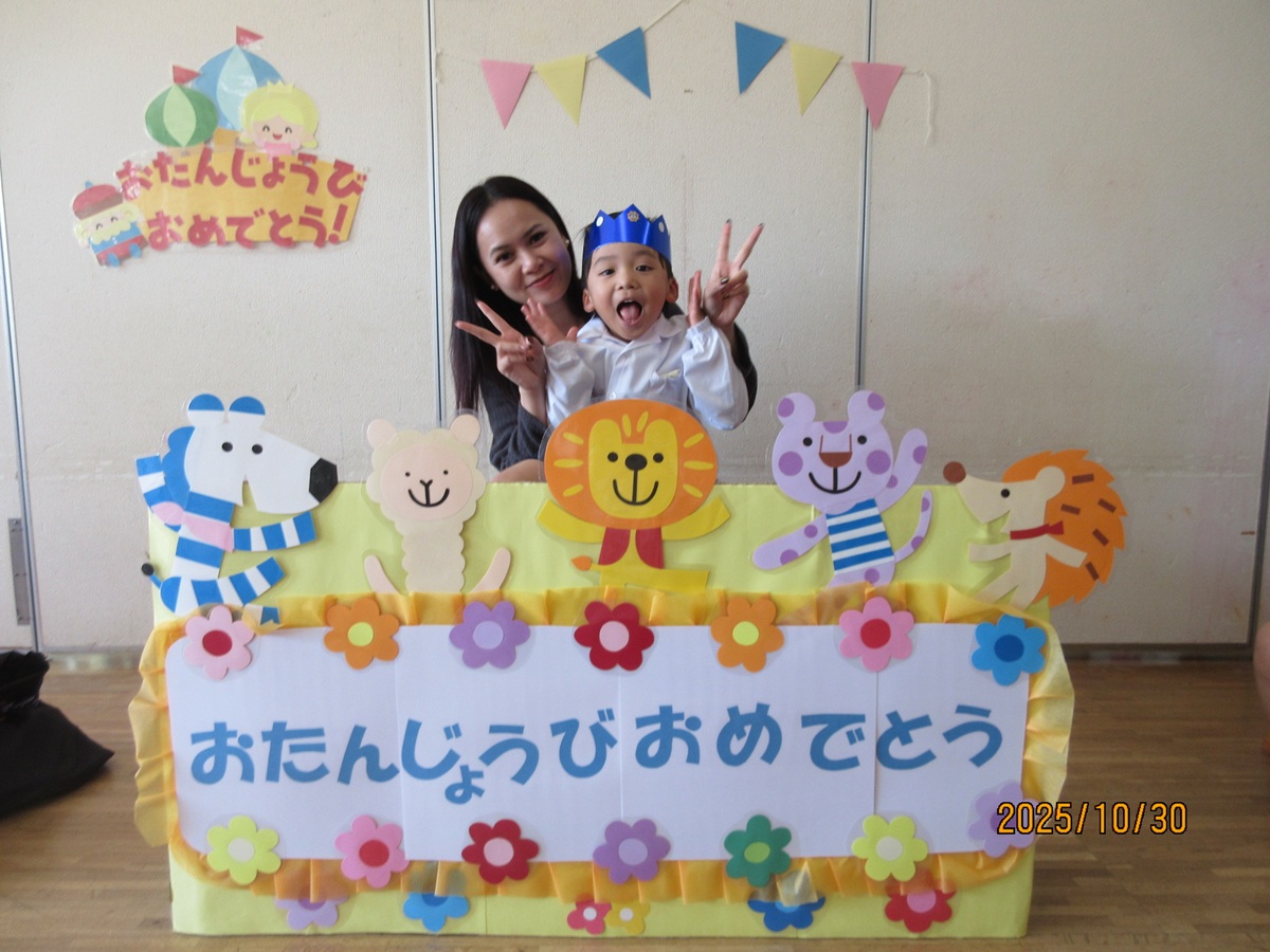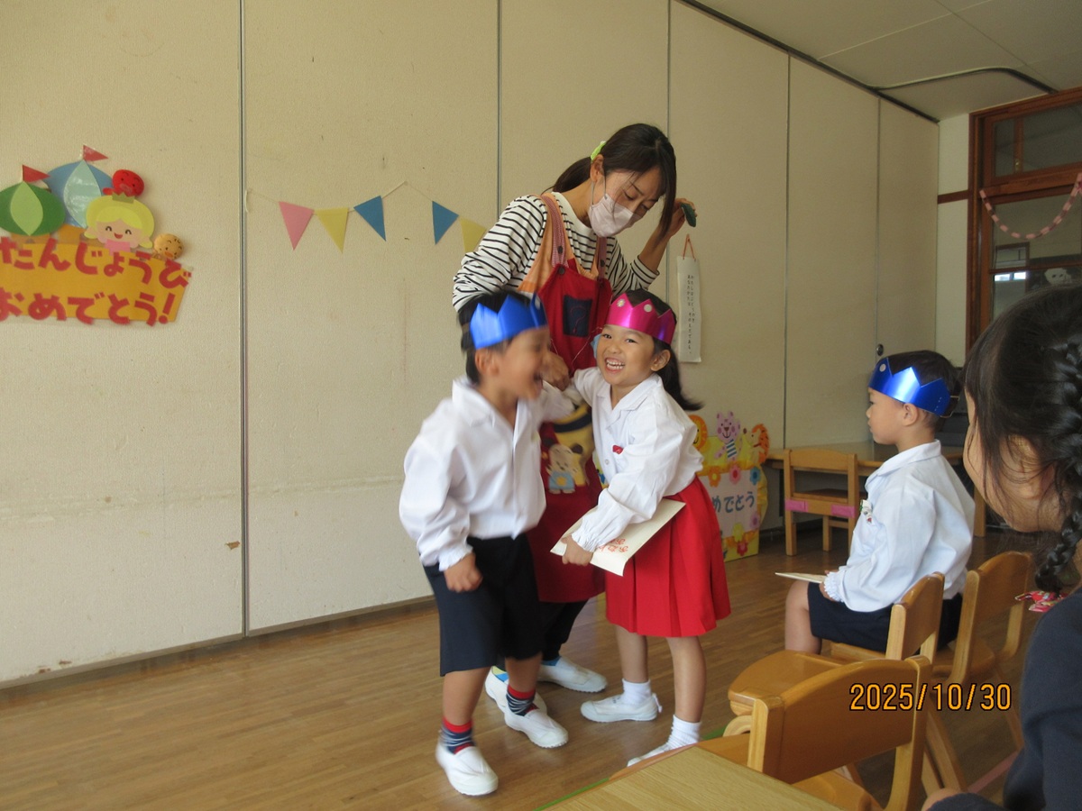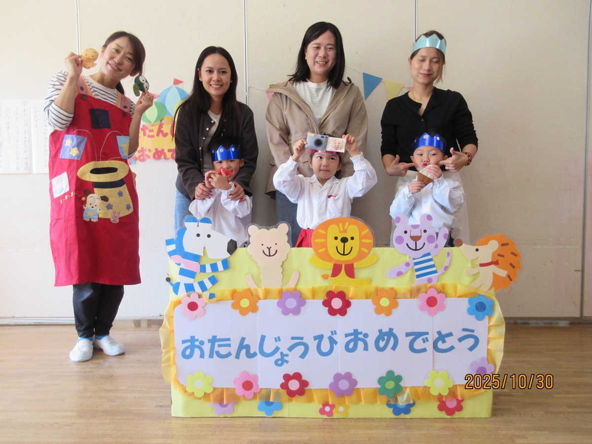 ไปŠๆ—ฅใฏใ€10ๆœˆ็”Ÿใพใ‚ŒใฎใŠๅ‹ใ ใกใฎใŠ่ช•็”ŸไผšใŒใ‚ใ‚Šใพใ—ใŸใ€‚ๆ•™ไผšใงใฏใ€ใ‚†ใ‚Š็ต„ใฎใŠๅ‹ใ ใกใจใŠ่ช•็”Ÿๆ—ฅใฎใŠๅ‹ใ ใกใŒไธ€็ท’ใซ็ฅžใ•ใพใซใŠ็ฅˆใ‚Šใ‚’ๆงใ’ใ€ๅœ’้•ทๅ…ˆ็”Ÿใ‹ใ‚‰็ฅ็ฆใ‚’ใ—ใฆใ„ใŸใ ใใพใ—ใŸใ€‚็ฅ็ฆใ‚’ใ—ใฆใ„ใŸใ ใ„ใŸใŠๅ‹ใ ใกใฏใ€ๅฌ‰ใ—ใใ†ใช็ฌ‘้ก”ใ‚’่ฆ‹ใ›ใฆใใ‚Œใพใ—ใŸโ™กใใฎๅพŒใฏใ€ๅ„ใ‚ฏใƒฉใ‚นใงใŠๆฅฝใ—ใฟไผšใŒ่กŒใ‚ใ‚Œใ€ใŠๅ‹ใ ใกใ‚’ใŠ็ฅใ„ใ™ใ‚‹ๆฅฝใ—ใ„ๆ™‚้–“ใ‚’้Žใ”ใ—ใพใ—ใŸใ€‚