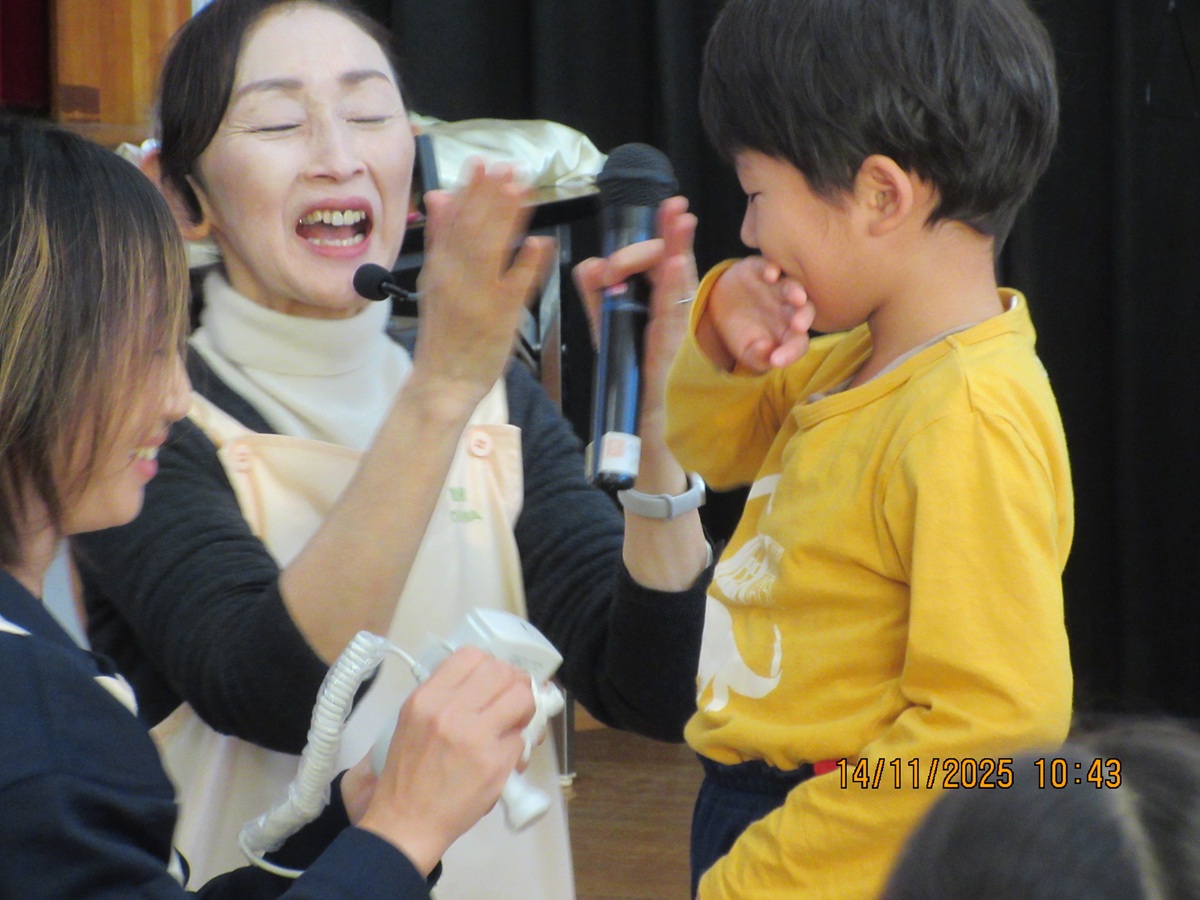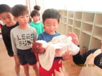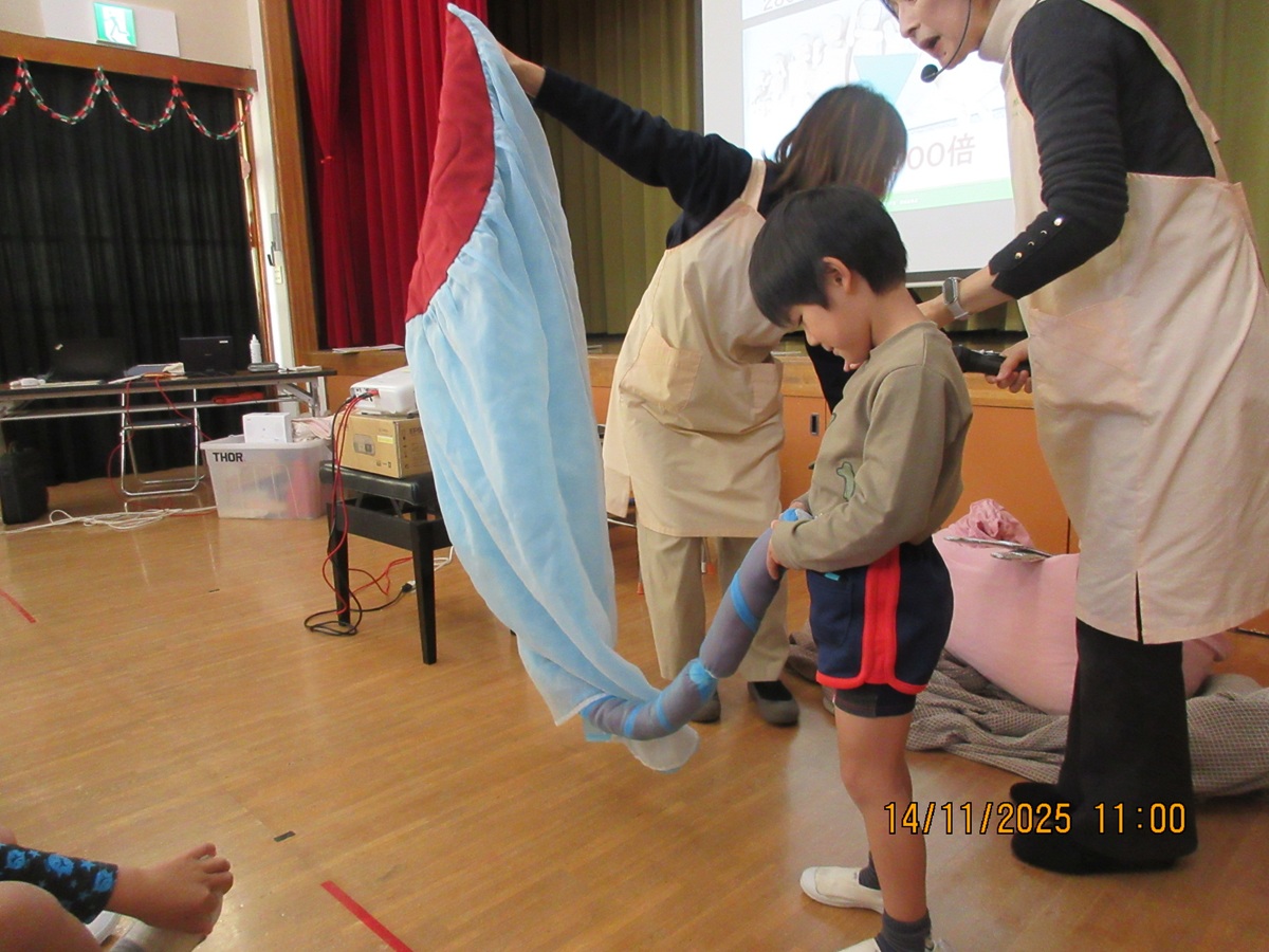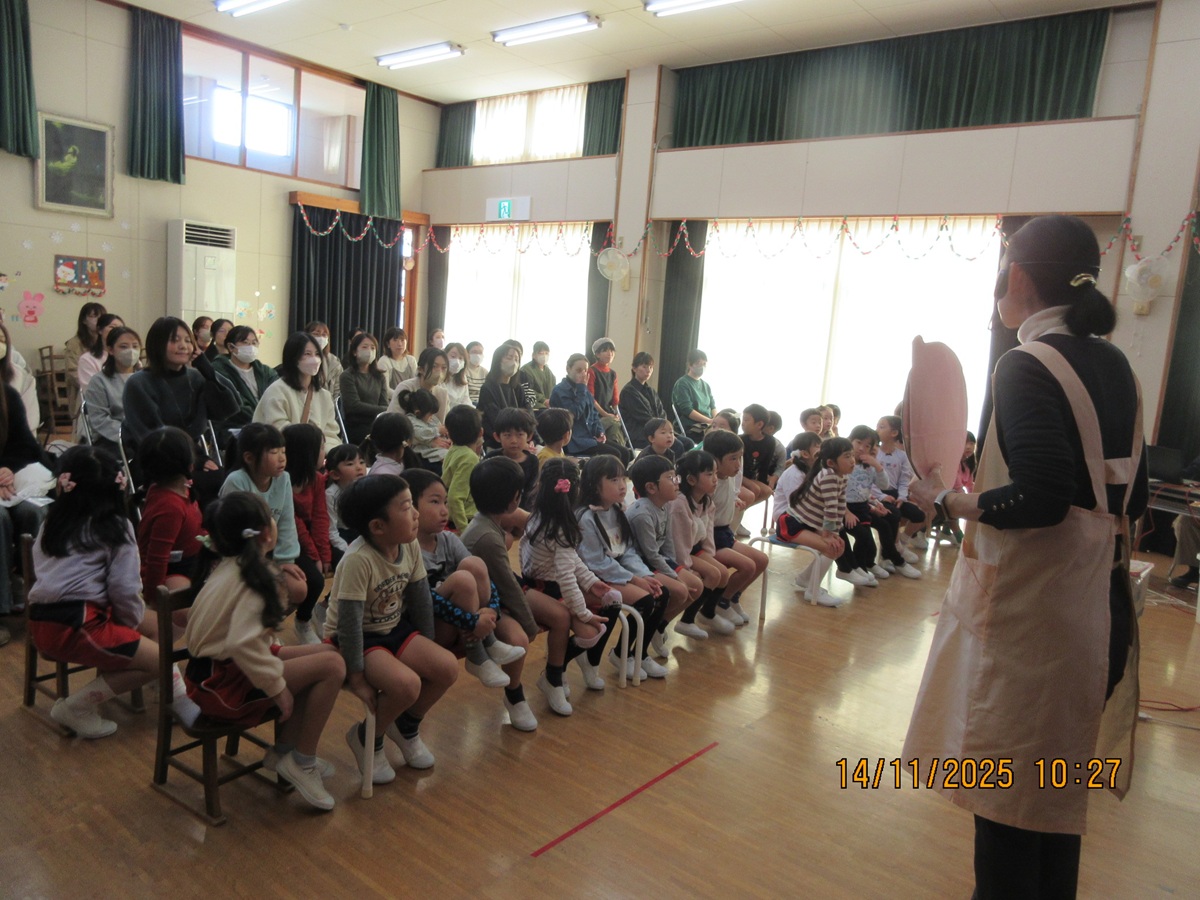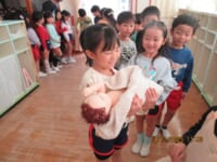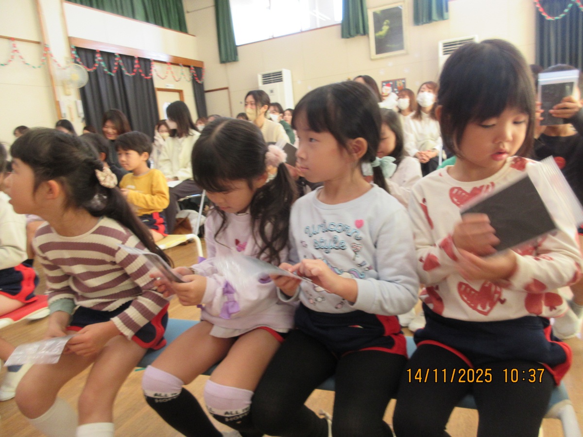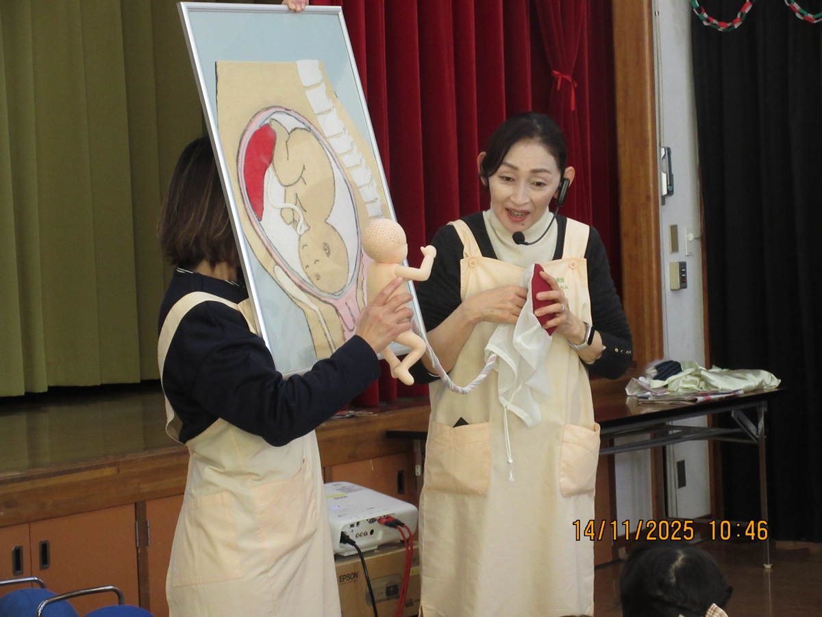 今日は、きく組の子どもたちと保護者の方々が集まり、『「生」教育助産師グルーOHANA』の方々による「いのちの授業」が行われました。米粒ほどの小さな命が、どのようにお母さんのお腹の中で大きくなっていくのかをスライドで教えていただき、子どもたちは「こんなに小さかったんだ!」と驚いていました。赤ちゃん人形を抱っこして重さを感じたり妊婦さんのお腹の重さを体験したり、赤ちゃんの心臓の音を聞かせてもらったりと、命のぬくもりを感じる貴重な体験をたくさんしました。保護者の方が「お子さんと初めて対面した時のお気持ち」を紹介してくださり、生まれてきてくれた喜びと深い愛情に心が温まりました(*^_^*)今日の学びを通して「生まれてきてくれてありがとう」という思いを胸に、命の大切さや生まれてきたことへの感謝を感じることができました。これからも日々の中で「いのち」の尊さを大切にしていきたいと思います。