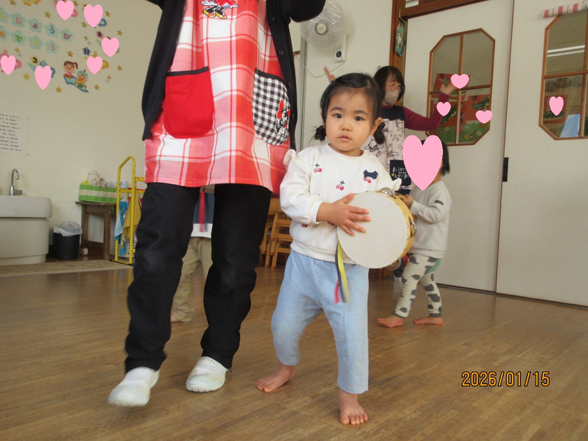 タンブリンで「は~い」の返事や、歩きながら鈴やカスタネットの演奏もバッチリ ✌