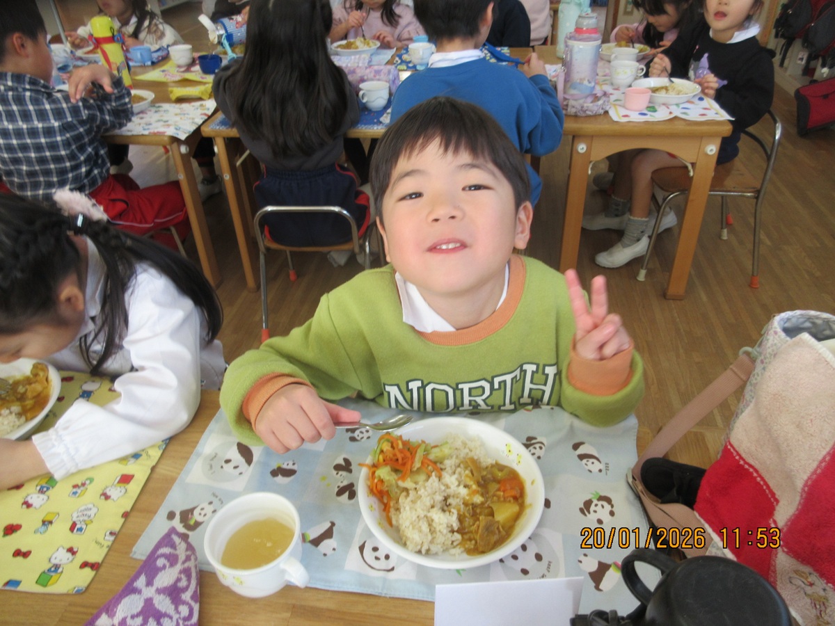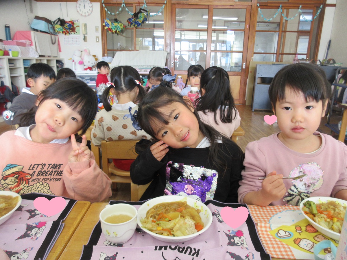 お楽しみ会の後は、大好きなお給食をいただきました♡ 誕生日リーダーさんありがとう♪