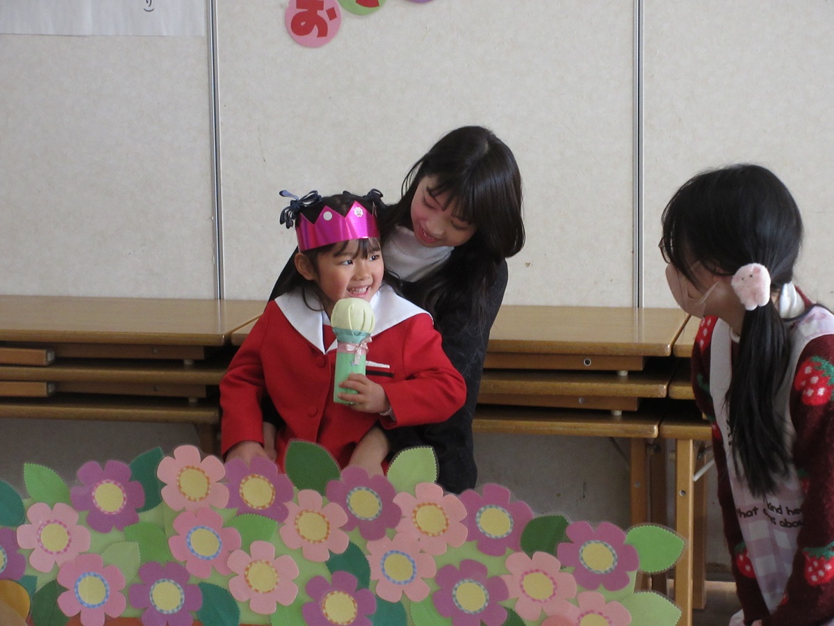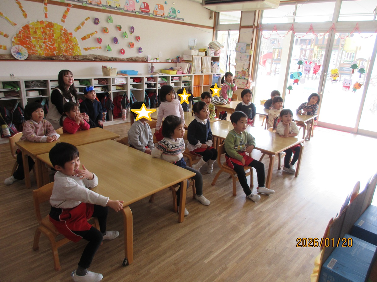 きく組では、1名のお友だちをお祝いしました。インタビューでは、「大きくなったらお皿屋さんになりたいです。」と笑顔で素敵な夢を教えてくれました(*^_^*)その夢が叶う日を楽しみにしています。お家の方からは「名前の由来」をお聞きしました。名前の響きがよく爽やかな優しい子になってほしいと名前に込められた愛情あふれるお話をありがとうございました。歌のプレゼントでは、「みんなともだち」を歌いました🎶卒園まであと少しとなり、子どもたちの歌声に胸が熱くなりました。