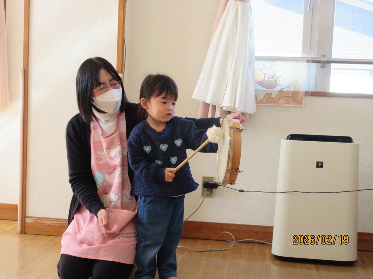 皆、とっても上手に出来たので、『太鼓』にもチャレンジしてみました(^^♪ 初めて太鼓に触れて、ワクワクしたね ♡♡