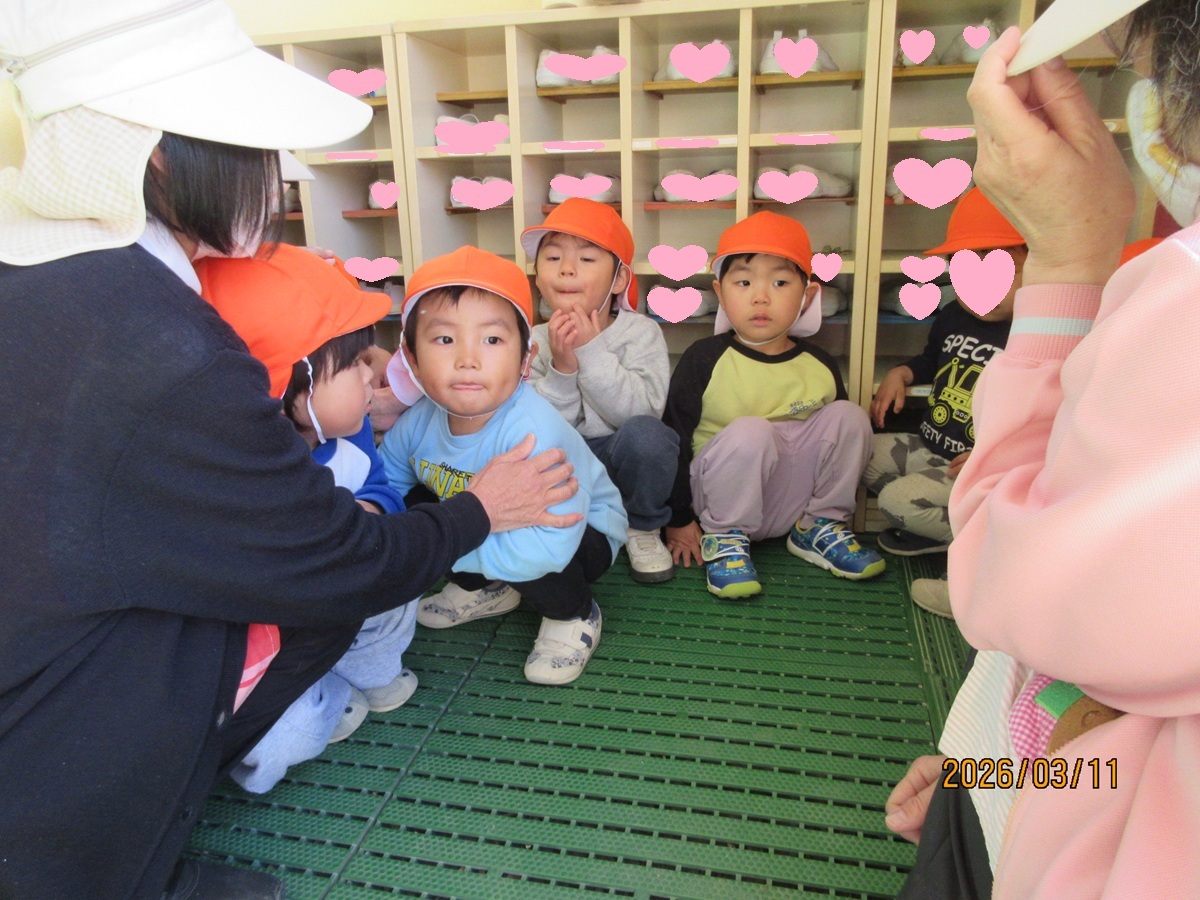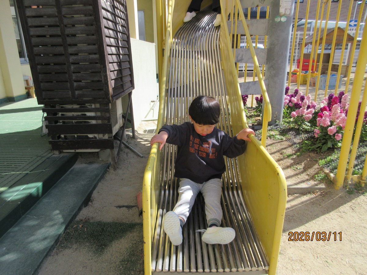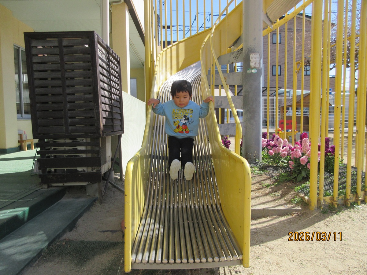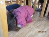 今朝は、地震が起こったことを想定し、避難訓練をしました。素早く机の下に隠れ、非常滑り台も静かに滑ることができました ☆