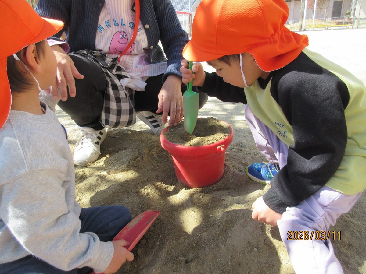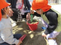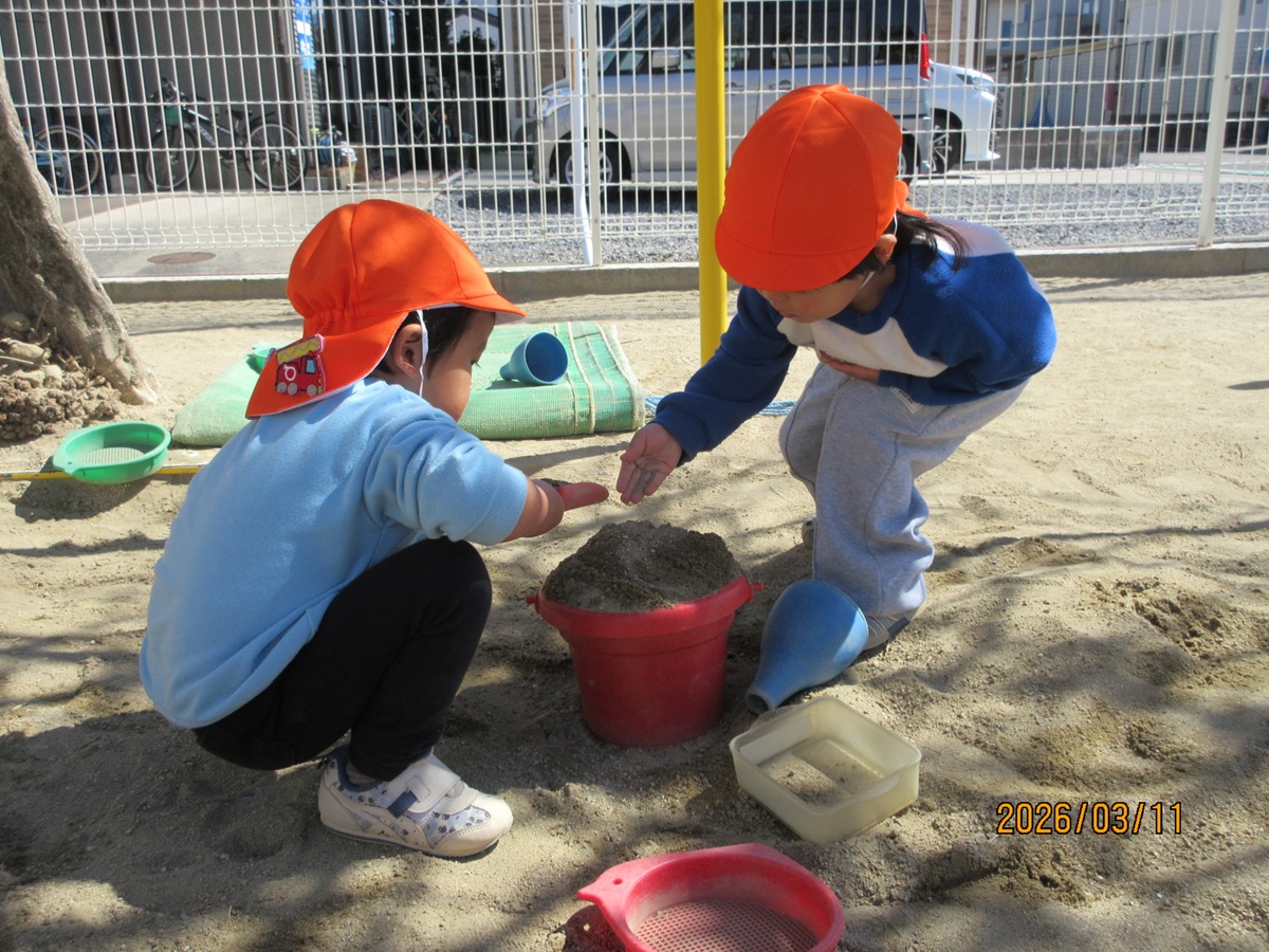 その後、みんなで砂場で遊んでいると…