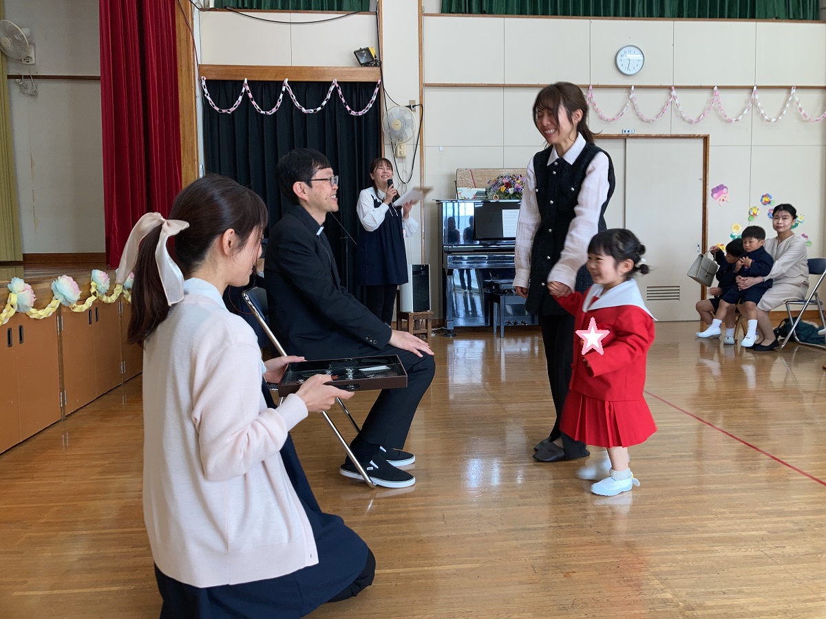明日から楽しい園生活が待っています🌷先生たちや神様に見守られながら。元気いっぱいあそびましょうね。