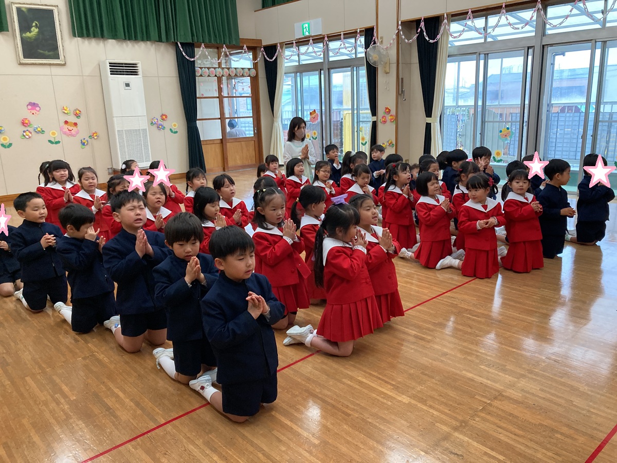 始業式では、心静かに神様にお祈りを捧げ、新しいクラスの先生や新しいお友だちの発表に目を輝かせていました。子どもたちは静かに話しを聞き落ち着いた様子で式に参加することができました。進級した喜びとともに心も一つ成長した子どもたちの姿に成長を感じ嬉しく思いました。