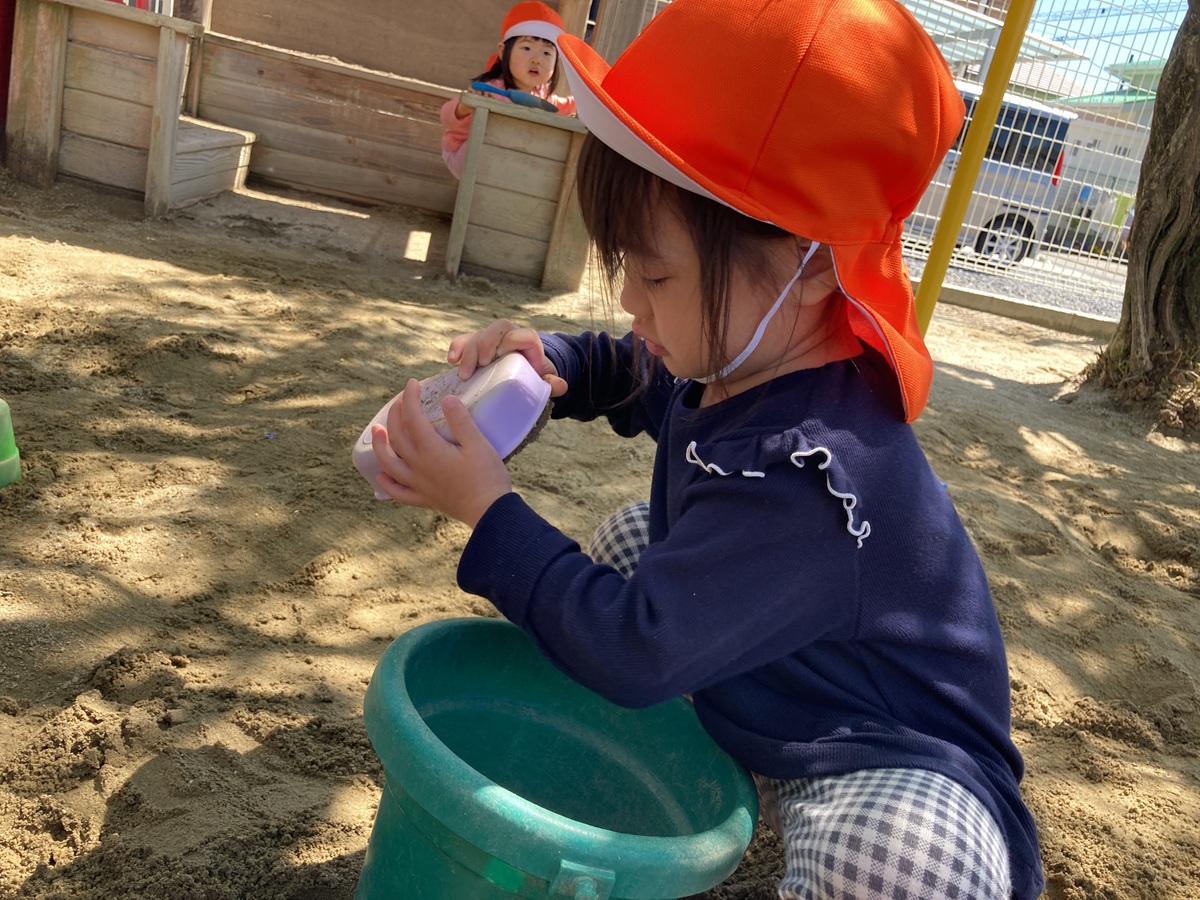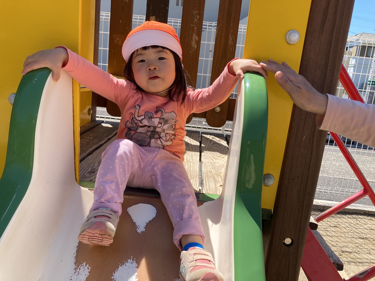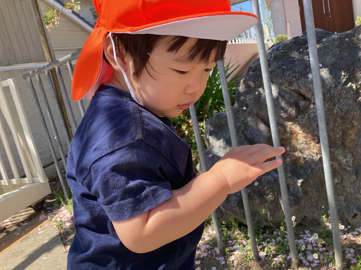 爽やかな風を感じながら、砂場や滑り台で思いっきり身体を動かしたり、ダンゴ虫が手に乗ってびっくりしたりと、発見がいっぱい!!