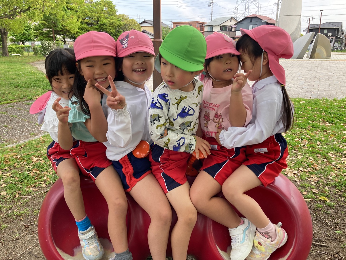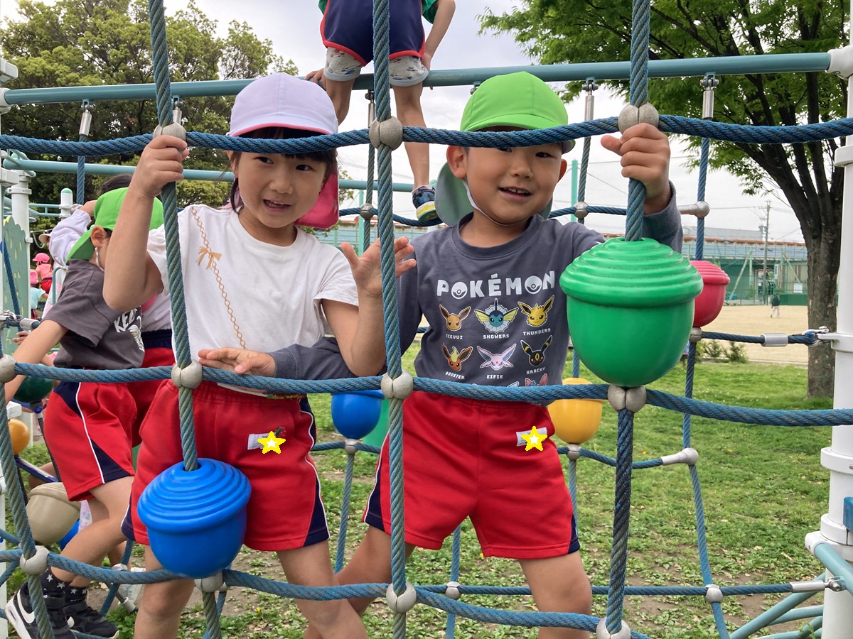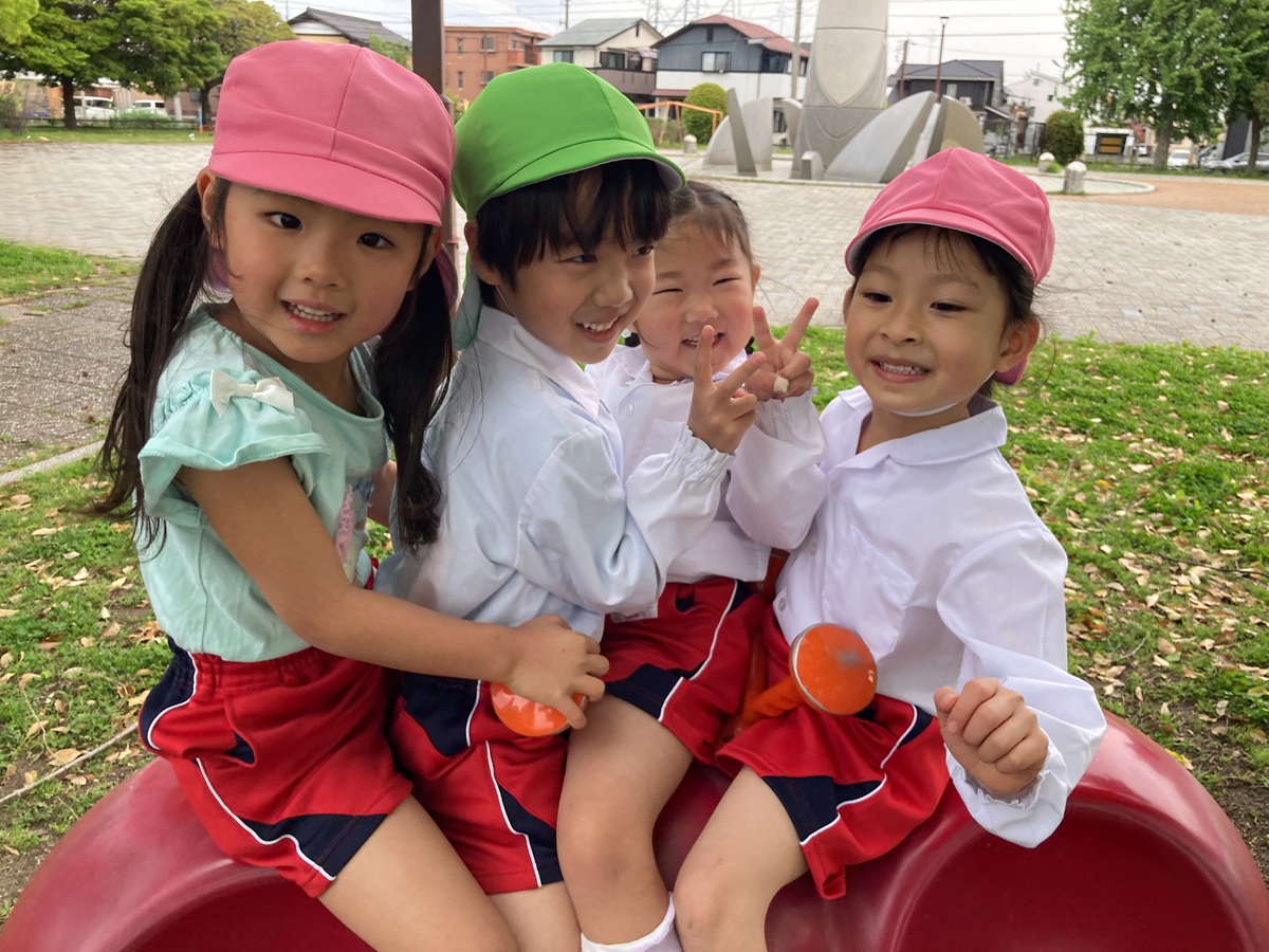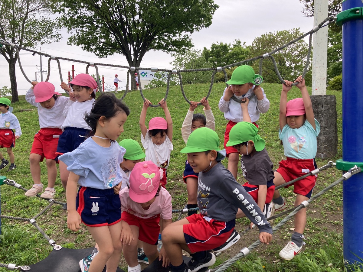 今朝は雨が降ったため、園庭で遊ぶことができませんでしたが、出かける頃にはすっかり天気も良くなり園バスに乗って「多加木公園」へお出かけしました(*^_^*) 遊具で遊べるかな~?と少し心配していましたが、公園に着くと遊具は乾いていて、みんなで元気いっぱい遊ぶことができました!!