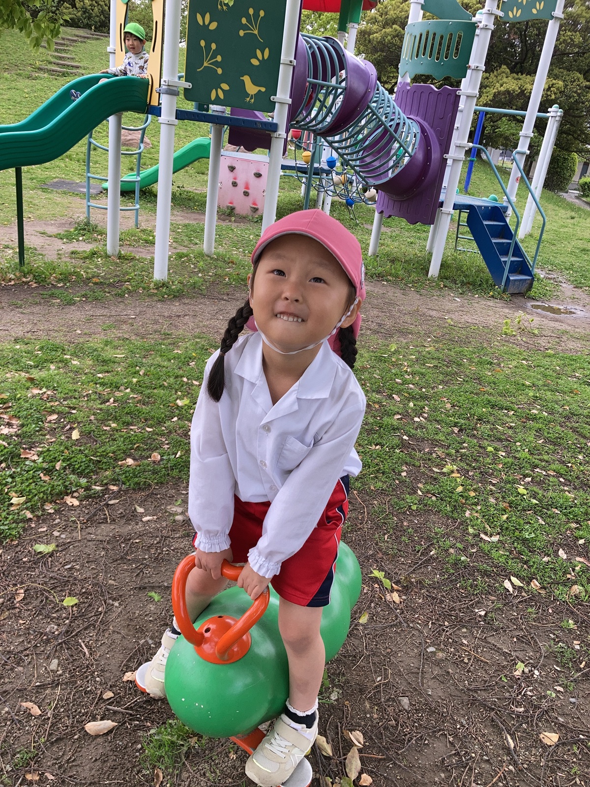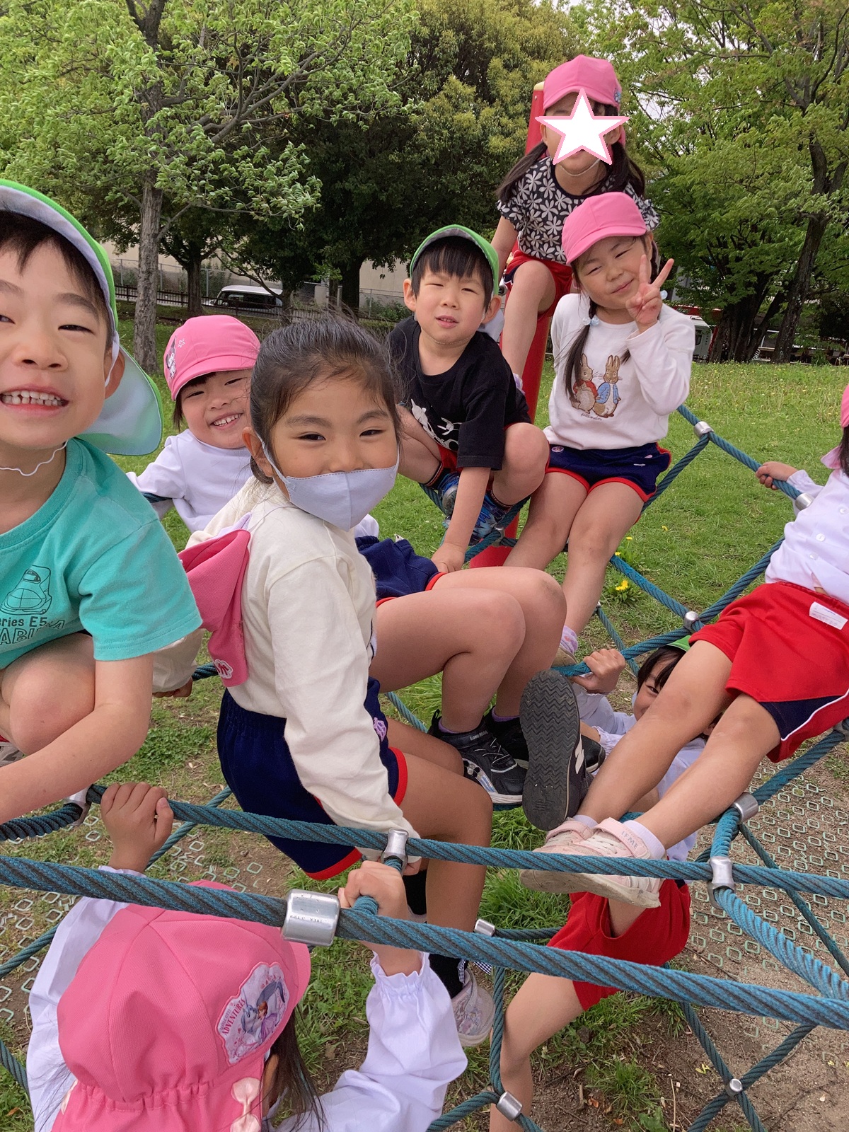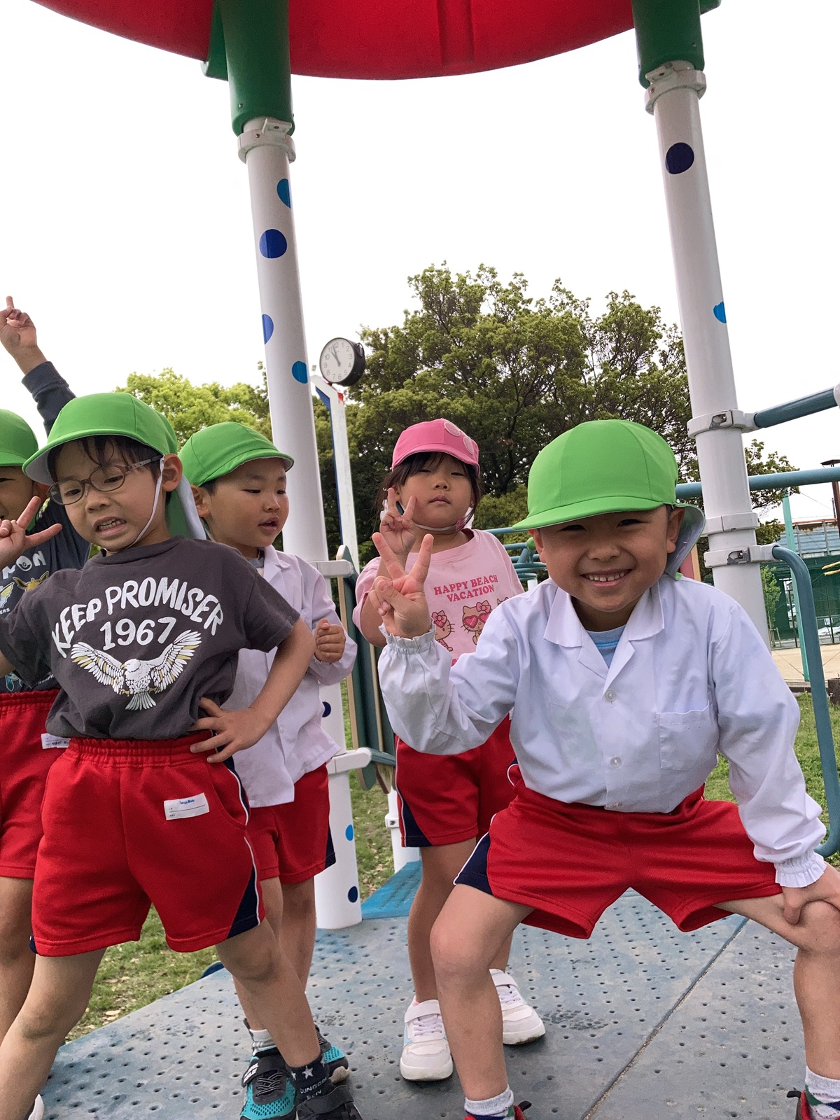 今朝は雨が降ったため、園庭で遊ぶことができませんでしたが、出かける頃にはすっかり天気も良くなり園バスに乗って「多加木公園」へお出かけしました(*^_^*) 遊具で遊べるかな~?と少し心配していましたが、公園に着くと遊具は乾いていて、みんなで元気いっぱい遊ぶことができました!!