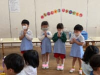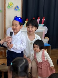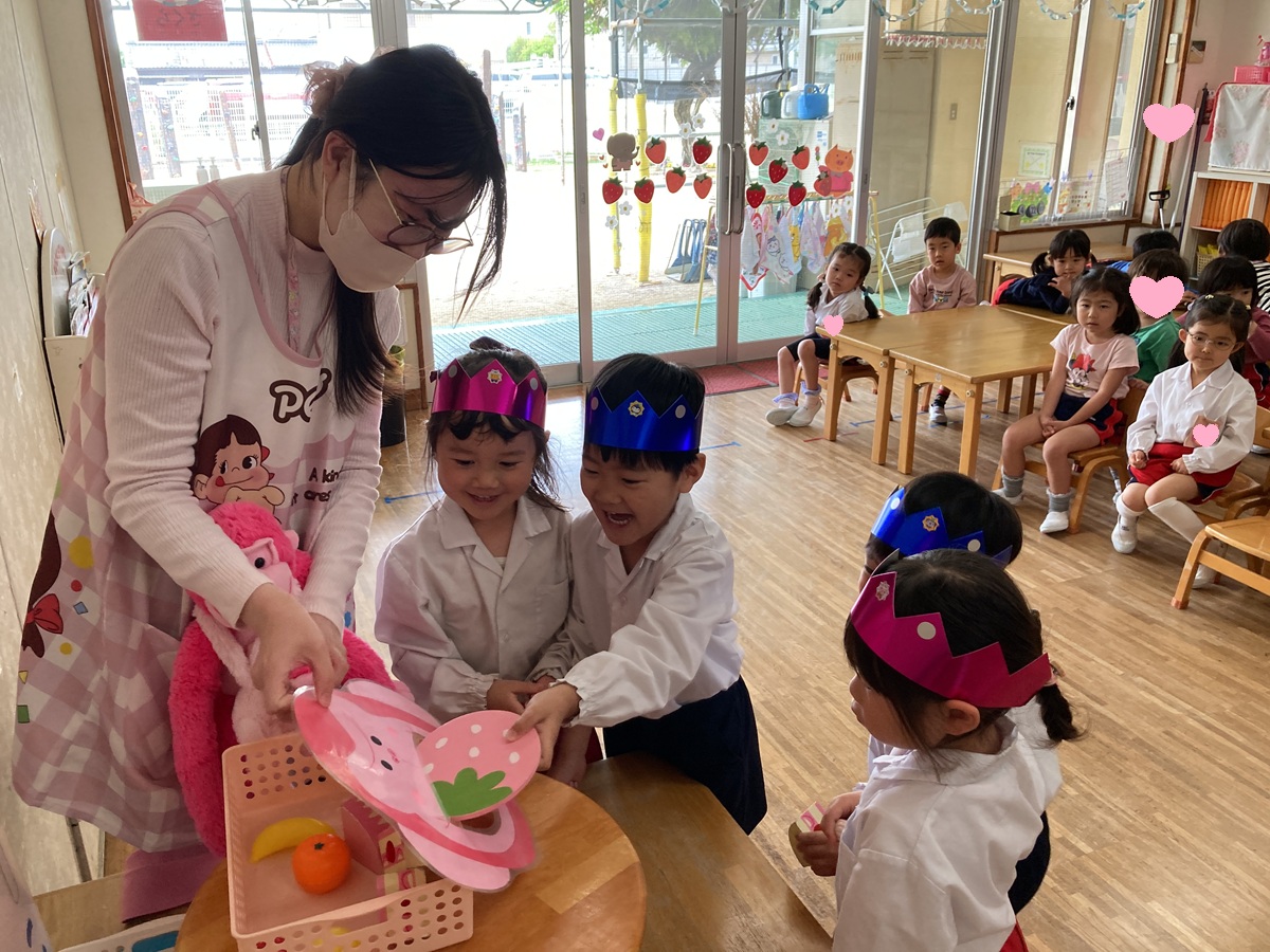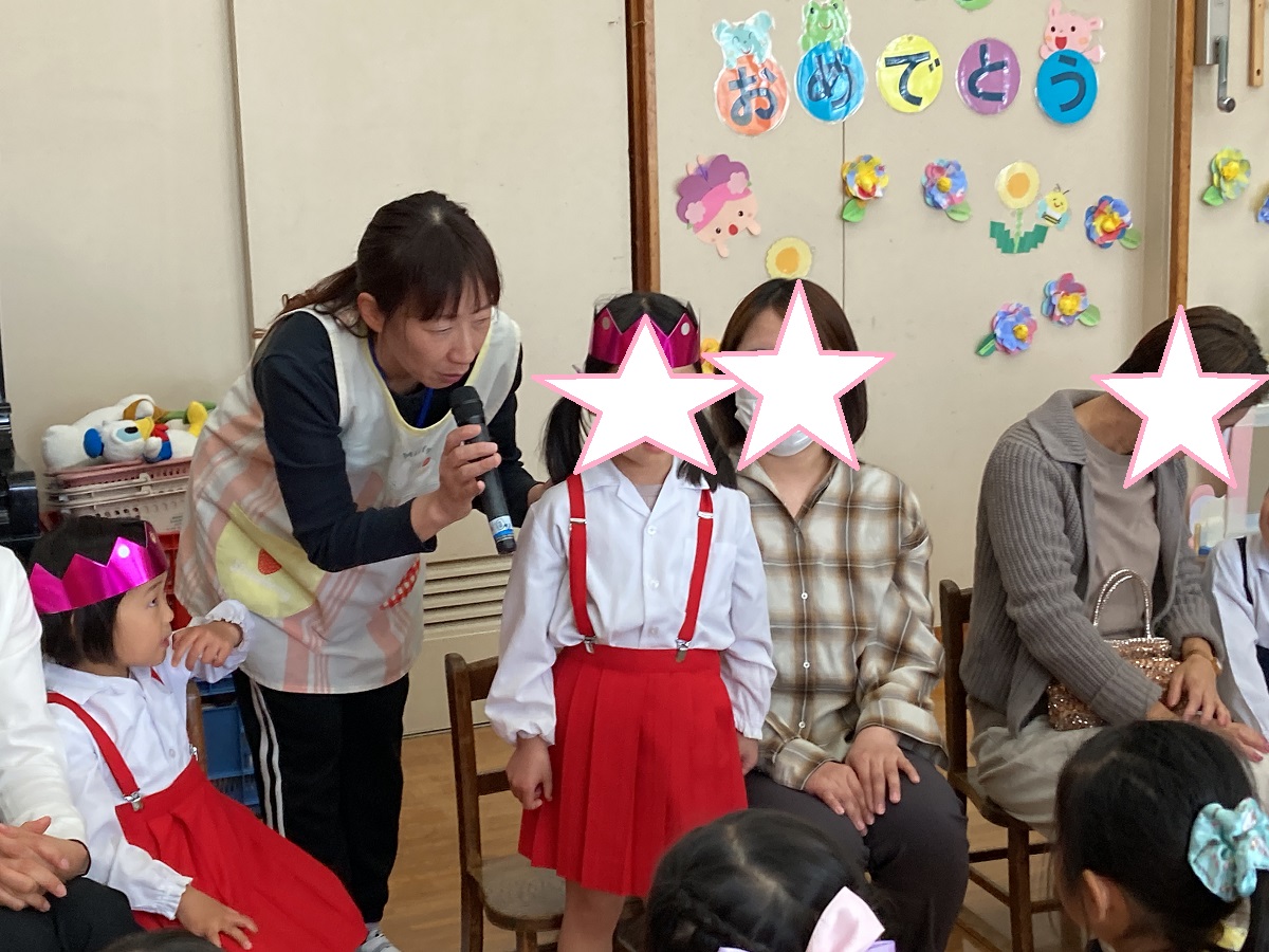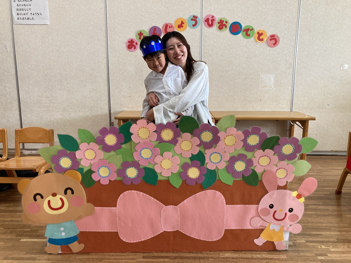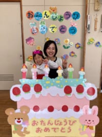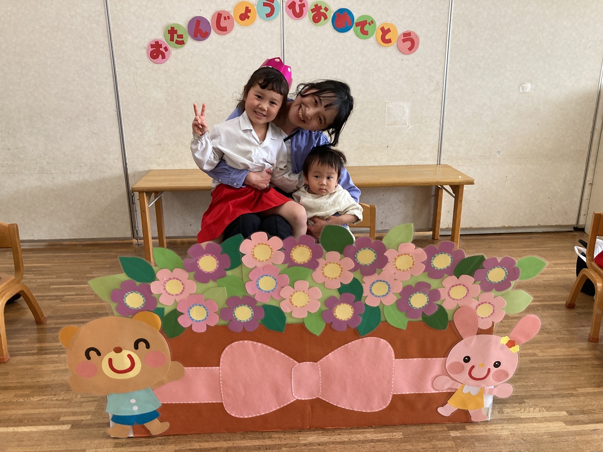 きく組は5人のお友だちのお祝いをしました。インタビューでは「大きくなったら何になりたい」かを聞きました。「高校の先生、パイロット、桃太郎・こまちの運転手、お花屋さん、藤子不二雄ミュージアムで働きたい」とキラキラと目を輝かせて素敵な夢を教えてくれました。みんなの夢が叶いますように・・・♡お家の方からはお子様の名前の由来を教えていただきました。愛情あふれる素敵なお話に感動しました。教えて頂きありがとうございました。