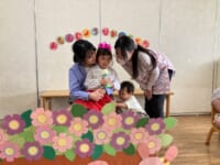 さくら組は4名のお友だちのお祝いをしました。インタビューでは、お友だちの好きな遊びを聞きました。『ブランコ』『鉄棒』『ブランコ』『鉄棒』、嬉しそうに答えてくれました。お家の方には、子どもの頃に好きだった遊びを教えていただきました。『お人形遊び』『鉄棒、泥団子づくり』『おしくらまんじゅう』『リカちゃん人形の着せ替え』と、答えていただきました。インタビューの後は、『あくしゅでこんにちは』の歌をプレゼントしました。