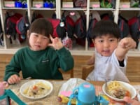 お楽しみ会の後は、大好きなお給食をいただきました♡ 誕生日リーダーさんありがとう♪