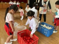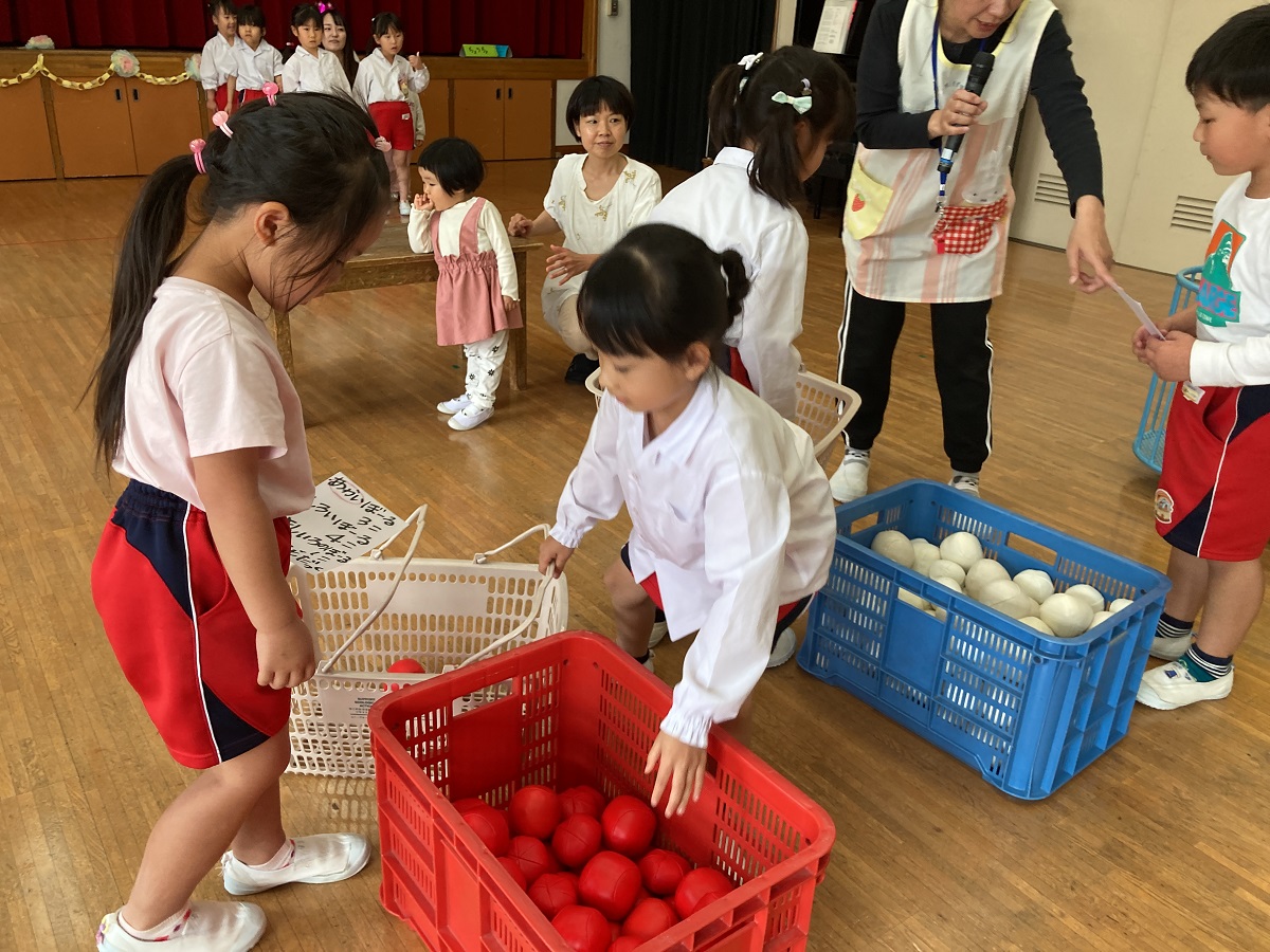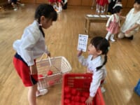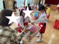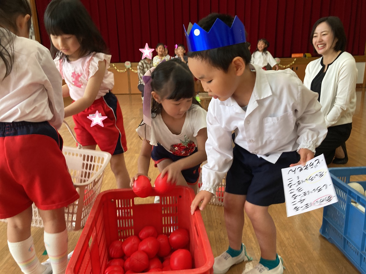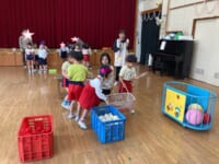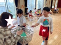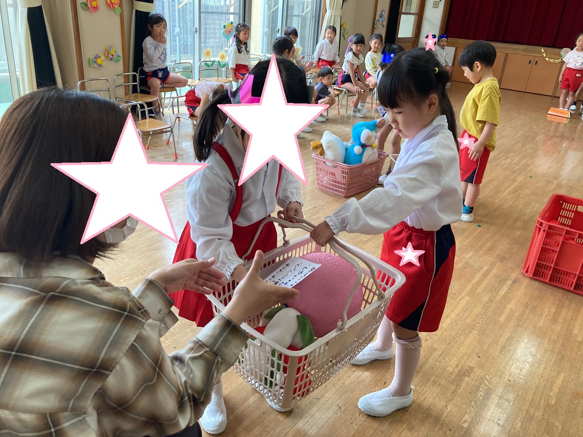 お楽しみのゲームの時間では、「お買い物ゲーム」をしました。2人一組になってカゴを持ち、紙に書かれた物を間違えないようにお買い物しました♡みんな協力し合ってお買い物を楽しんでいましたよ(⌒∇⌒)
