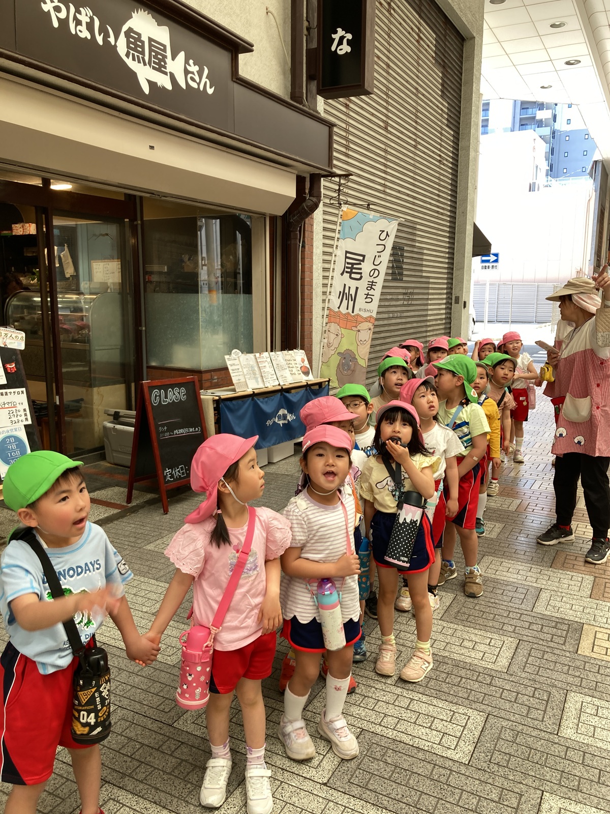 青空の下元気に泳ぐこいのぼりを見に本町に行ってきました。おおきなこいのぼりを見て子どもたちは「すごい!」「おおきいね!」「いっぱい泳いでるね」と目を輝かせていました。色とりどりのこいのぼりを見上げながら心地よい風を感じ、季節の行事に親しむことができました。