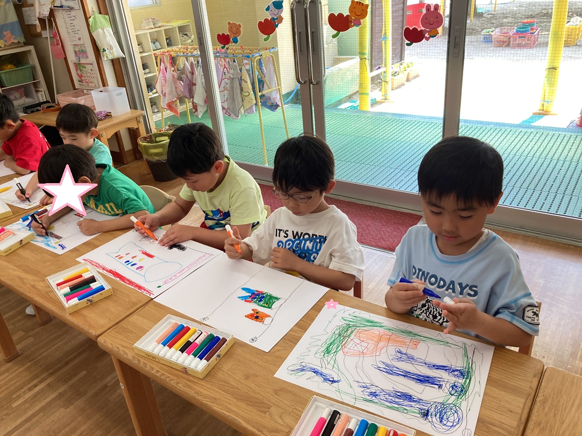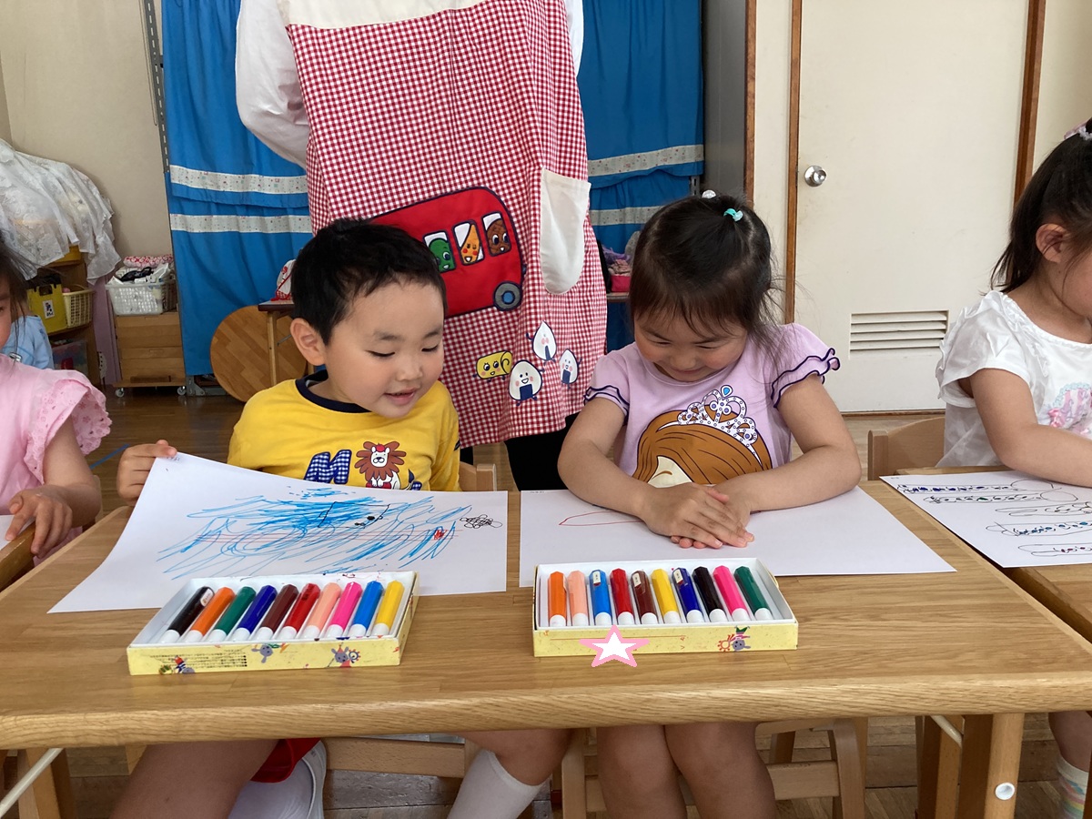 幼稚園に帰って来てからは「こいのぼり」の絵を描きました。みんな思い思いの絵を楽しそうに描いていました。これからも子どもたちの健やかな成長を願いながらさまざまな体験を大切にしていきたいと思います。